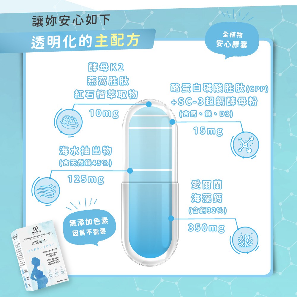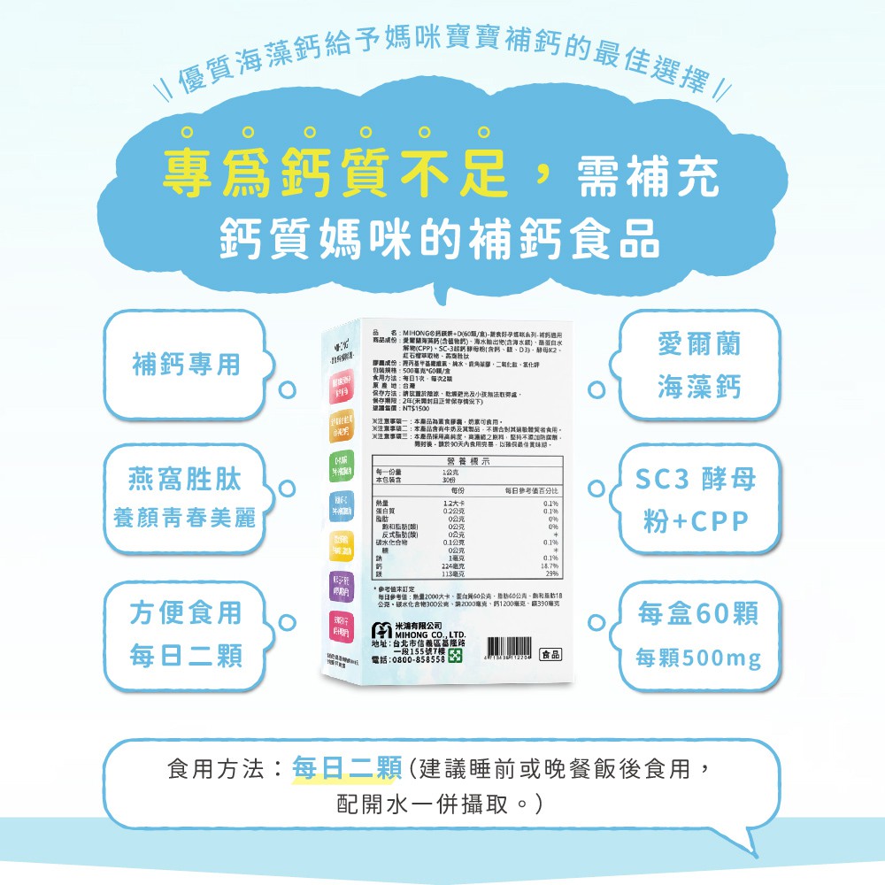 MIHONG米鴻生醫 鈣 鎂 妍 + D(60顆/盒) – 補鈣適用【孕婦】孕期保養 海藻鈣 鈣粉 燕窩 營養品鈣鎂妍+Dx1盒 ✅加數量更優惠✅Maternity Vitamins & SupplementMIHONG® 米鴻生醫