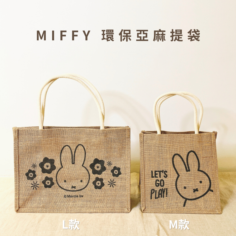 【MIFFY】米飛兔 M款:play it cool|亞麻野餐手提袋 野餐袋 棉麻購物袋 無印風手提袋 禮物袋Play It CoolMiffy米飛兔旗艦店