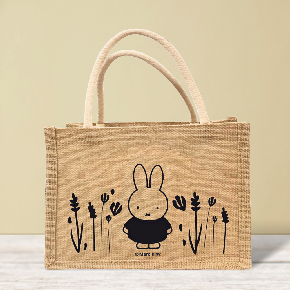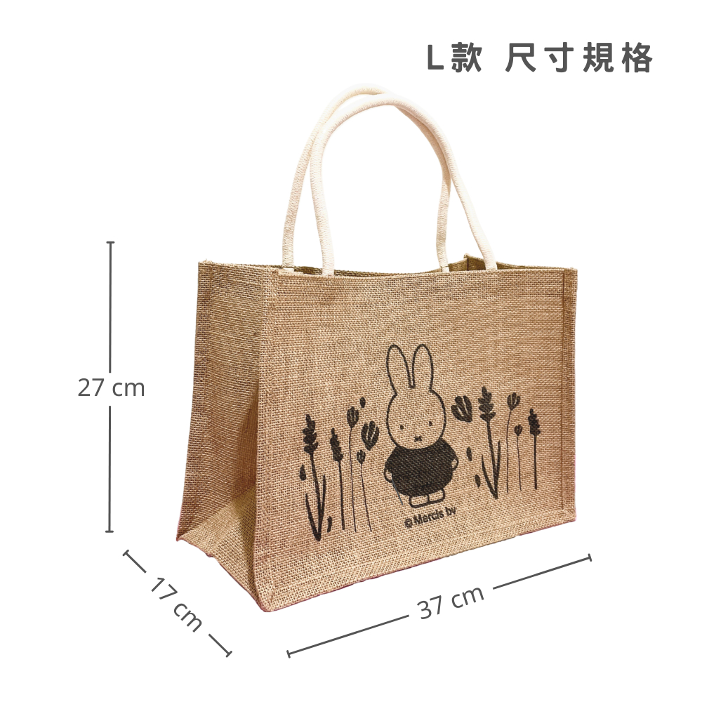 【MIFFY】米飛兔 L款:米飛草叢|亞麻野餐手提袋 野餐袋 手提袋 購物袋 亞麻袋米飛草叢Miffy米飛兔旗艦店
