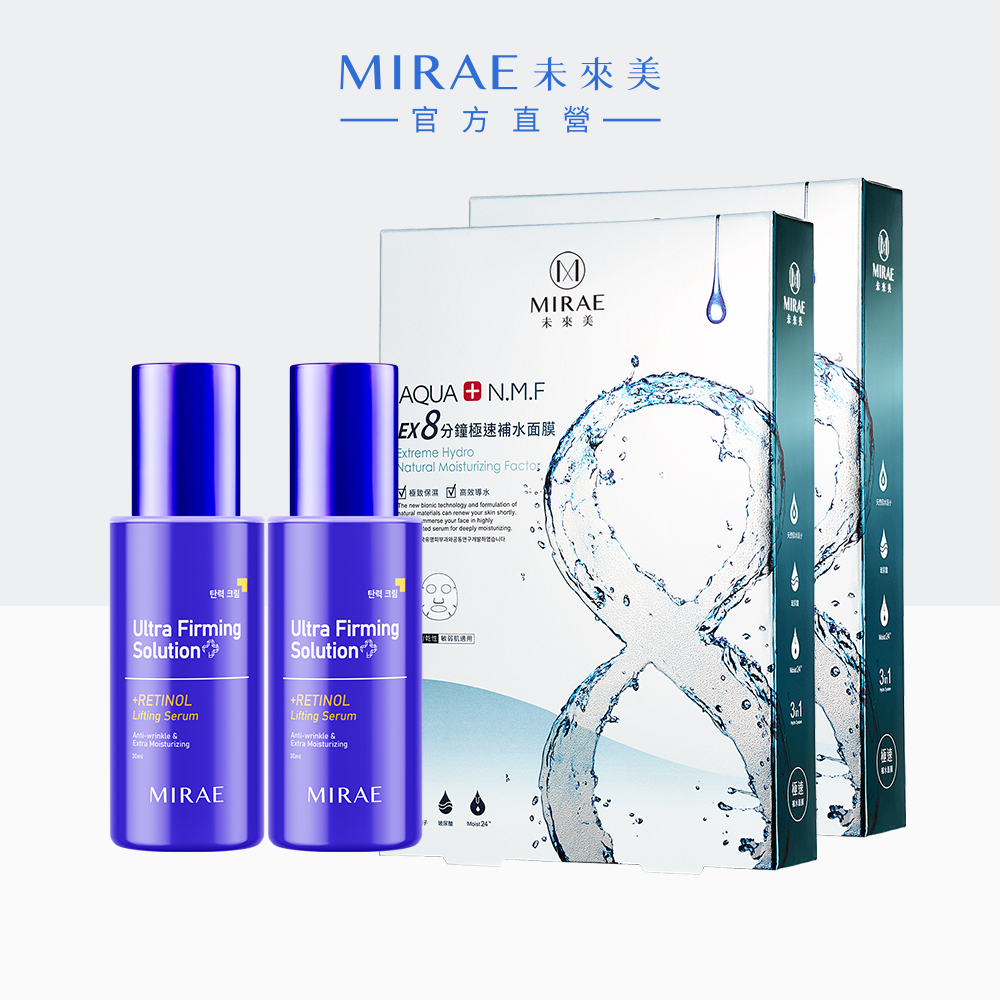 【MIRAE未來美】繃繃精華雙瓶組(0.5%超級A醇緊緻精華30ml-2瓶)|官方旗艦店 撫紋抗老 緊緻毛孔A醇精華30ml-2瓶+補水面膜2盒|A醇精華30ml-2瓶Facial Serum & EssenceMIRAE未來美官方旗艦店