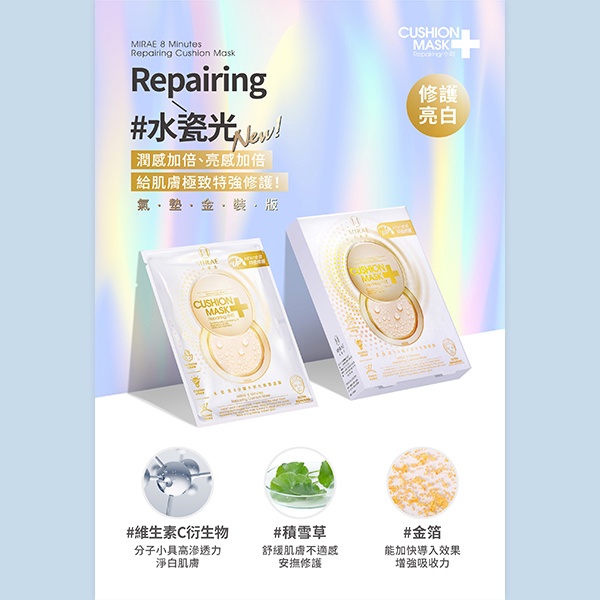 【MIRAE未來美】8分鐘氣墊面膜(4片/盒)|官方旗艦店 保濕補水 瞬白透亮水潤光(4片/盒)|水白光(4片/盒)Face Mask & PacksMIRAE未來美官方旗艦店