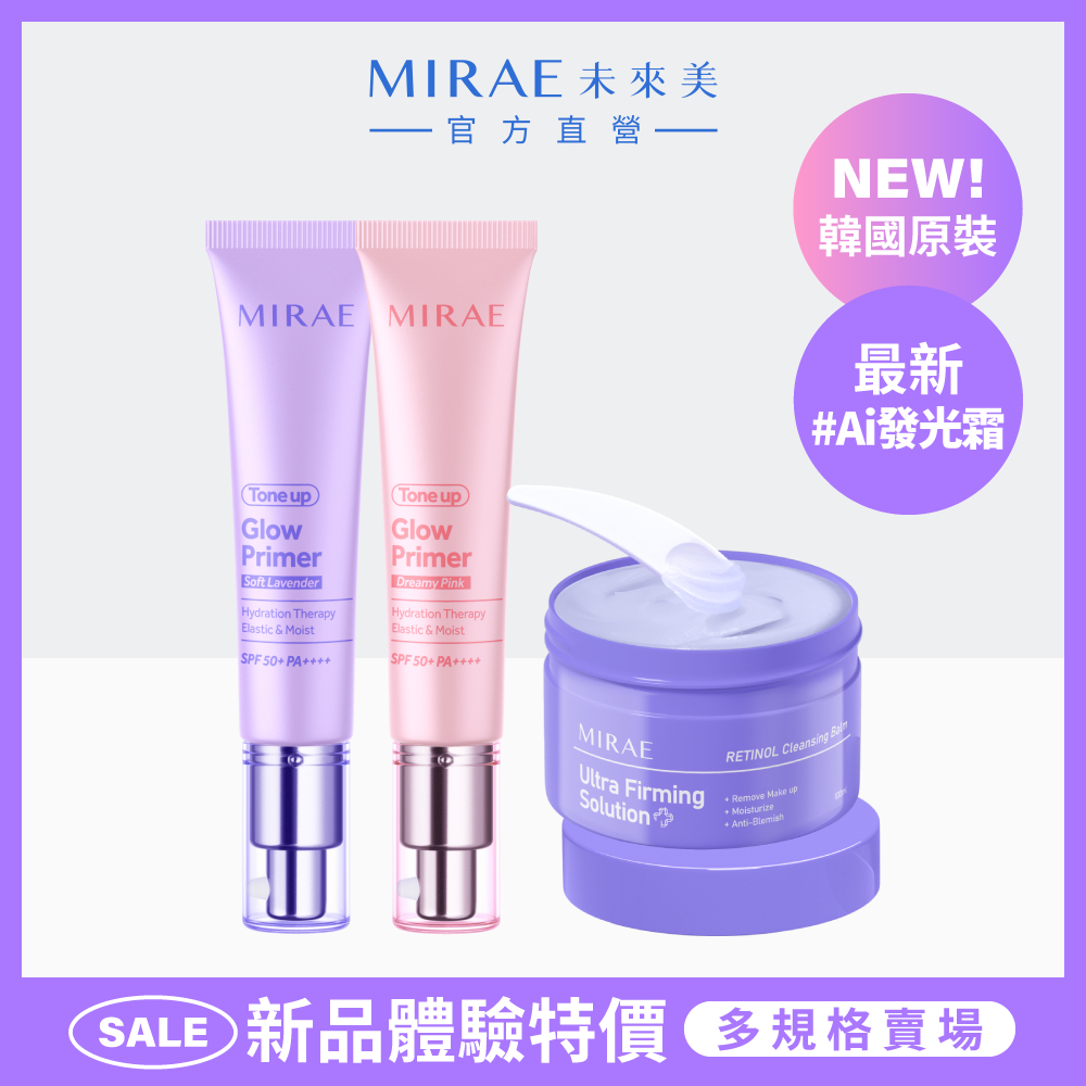 【MIRAE未來美】AI發光霜2支SPF50+ PA++++(潤色防曬)+A醇卸妝膏|官方旗艦店 抗曬抗汗 妝前乳 隔離煥顏紫+亮顏粉 各1支+A醇卸妝膏1罐|煥顏紫2支+A醇卸妝膏1罐|亮顏粉2支+A醇卸妝膏1罐FaceMIRAE未來美官方旗艦店