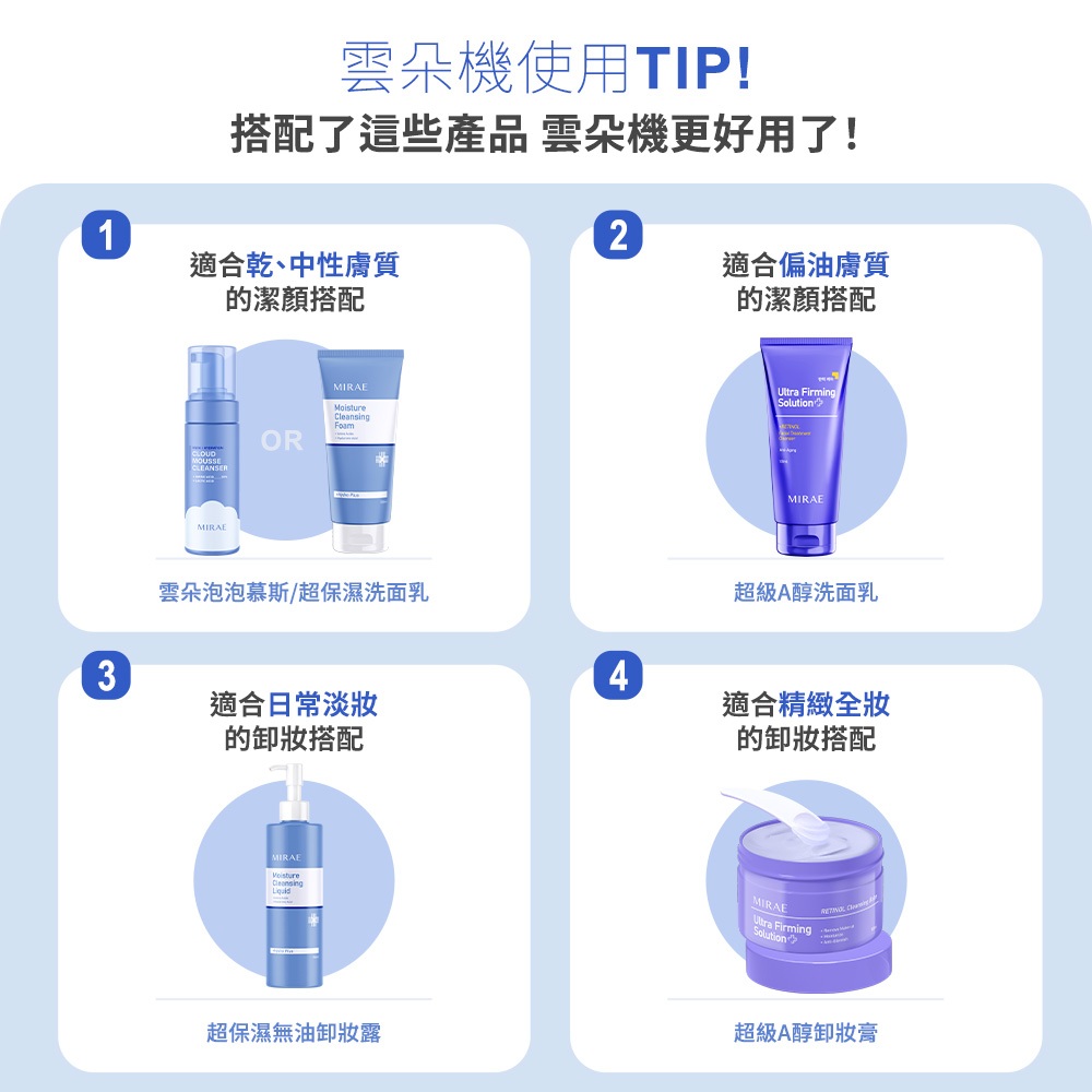 【MIRAE未來美】雲朵洗卸組(雲朵洗臉機+潔顏慕絲+A醇卸妝膏)|官方旗艦店 代謝粉刺顆粒雲朵洗臉機+潔顏慕絲1瓶+卸妝膏1罐Facial Care ToolsMIRAE未來美官方旗艦店