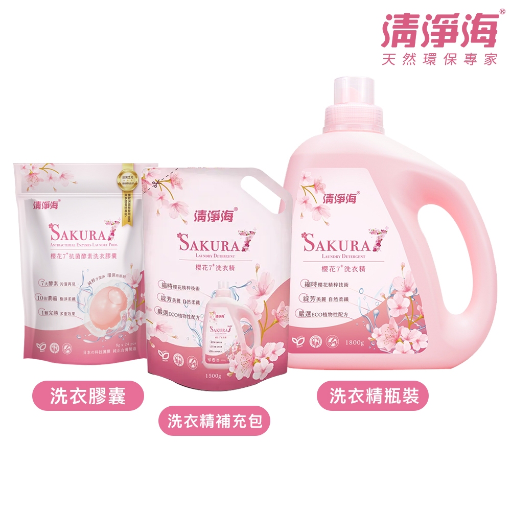 【清淨海】櫻花7+ 洗衣精1800g洗衣膠囊(8gx24顆)|洗衣精1800g(超取最多4罐)|補充包1500g(超取最多6包)Laundry CareMIPA 生活百貨