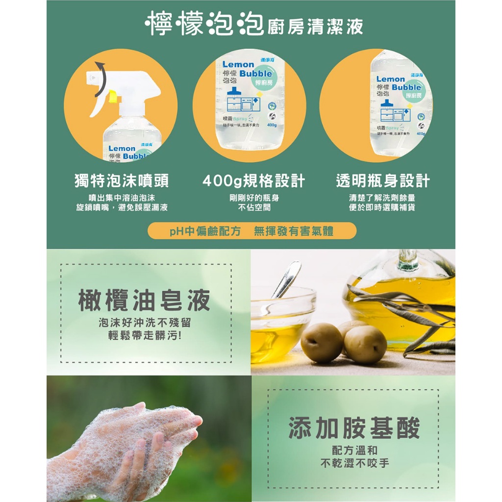 【清淨海】檸檬泡泡廚房清潔噴霧(400g/瓶)400gx1瓶|400gx3瓶Cleaning AgentsMIPA 生活百貨