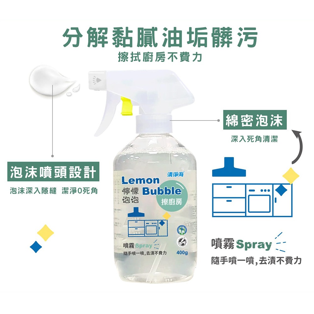 【清淨海】檸檬泡泡廚房清潔噴霧(400g/瓶)
