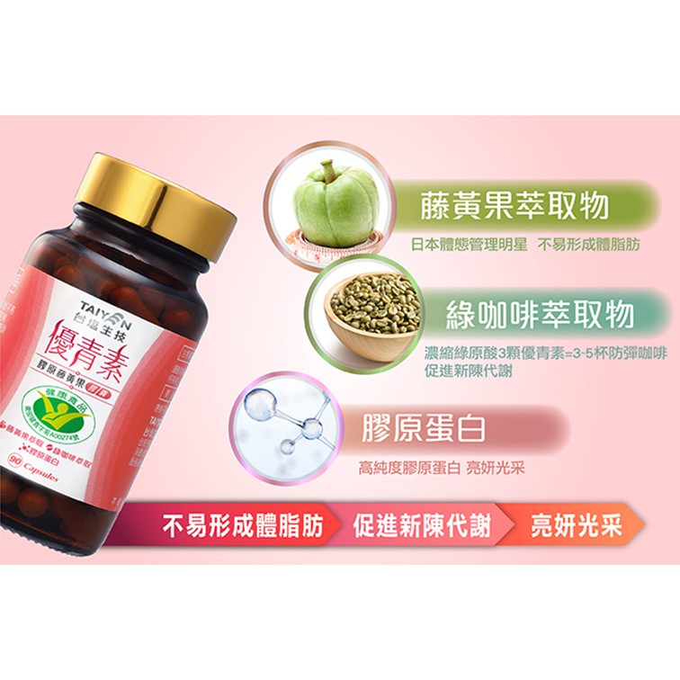 【台鹽生技】優青素-膠原藤黃果膠囊(90粒/瓶)90粒x1瓶Weight ManagementMIPA 生活百貨