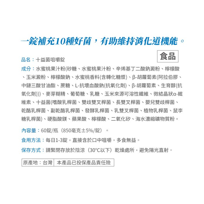 台鹽生技 十益菌咀嚼錠(60錠/罐)十益菌Weight ManagementMIPA 生活百貨
