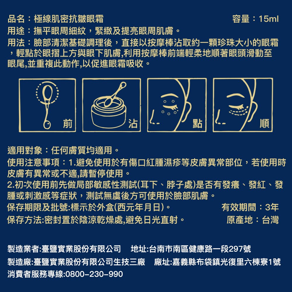 【台鹽生技】極線肌密抗皺眼霜 (15ml)15mlx1罐|15mlx3罐|15mlx5罐Eye TreatmentMIPA 生活百貨