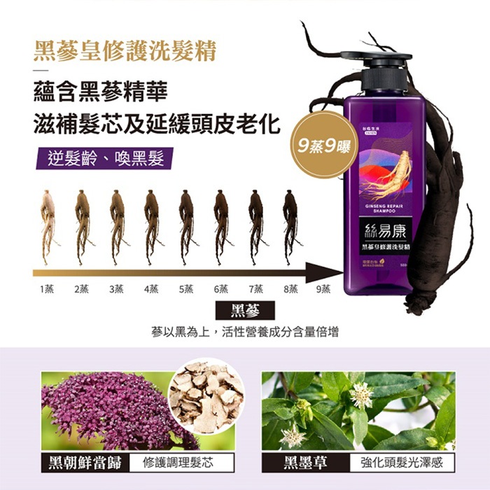 台鹽 絲易康黑蔘皇修護洗髮精500ml黑蔘皇修護ShampooMIPA 生活百貨