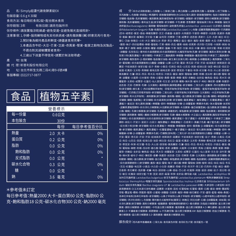 【Simply新普利】超濃代謝夜酵素錠EX (升級版)(30錠/盒)超濃代謝夜酵素錠EXWeight ManagementMIPA 生活百貨