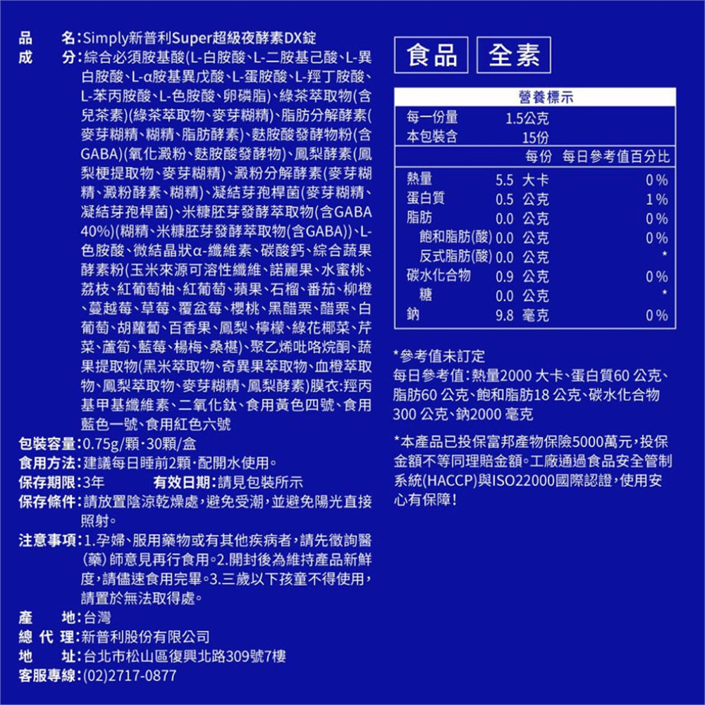 【Simply新普利】夜酵素錠SUPER DX(30錠/盒)夜酵素錠SUPER DXWeight ManagementMIPA 生活百貨