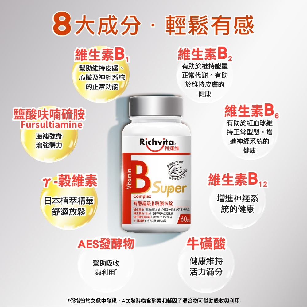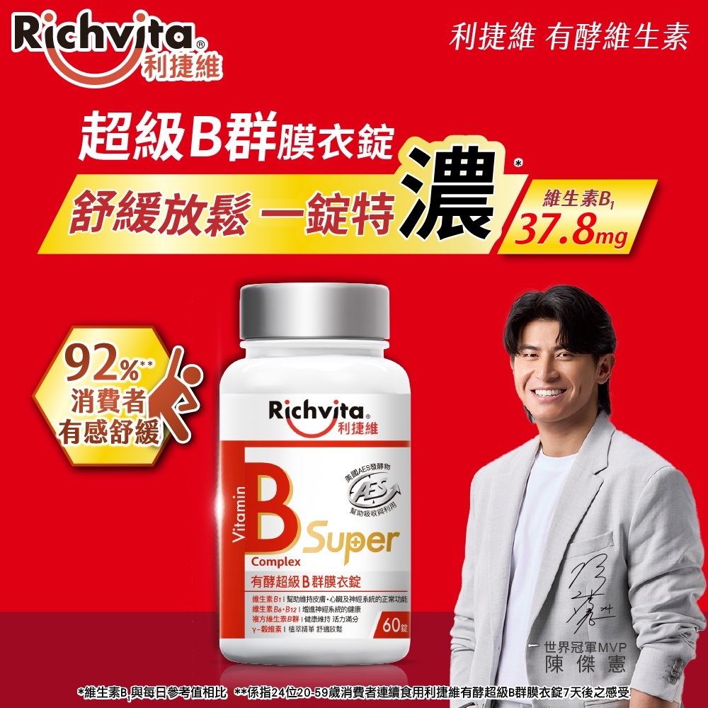 Richvita利捷維 有酵超級B群膜衣錠(60錠/瓶)超級B群Well BeingMIPA 生活百貨
