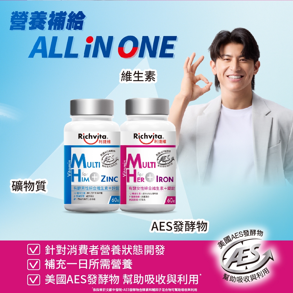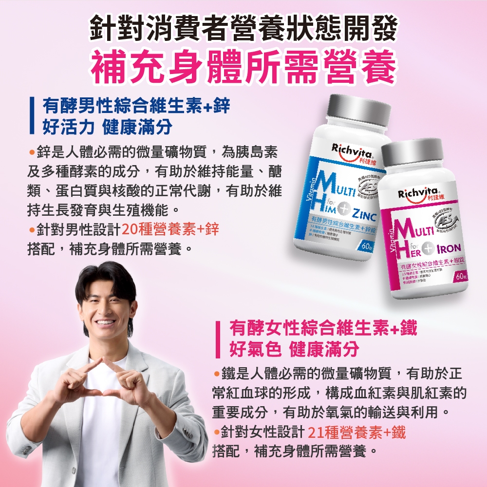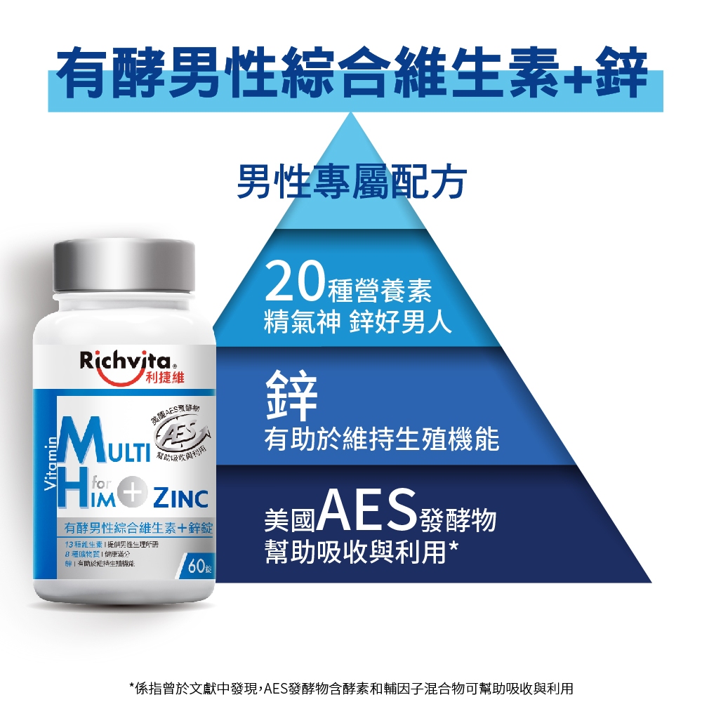 Richvita利捷維 有酵男性綜合維生素+鋅(60錠/瓶)2026.10有酵男性綜合維生素+鋅Well BeingMIPA 生活百貨