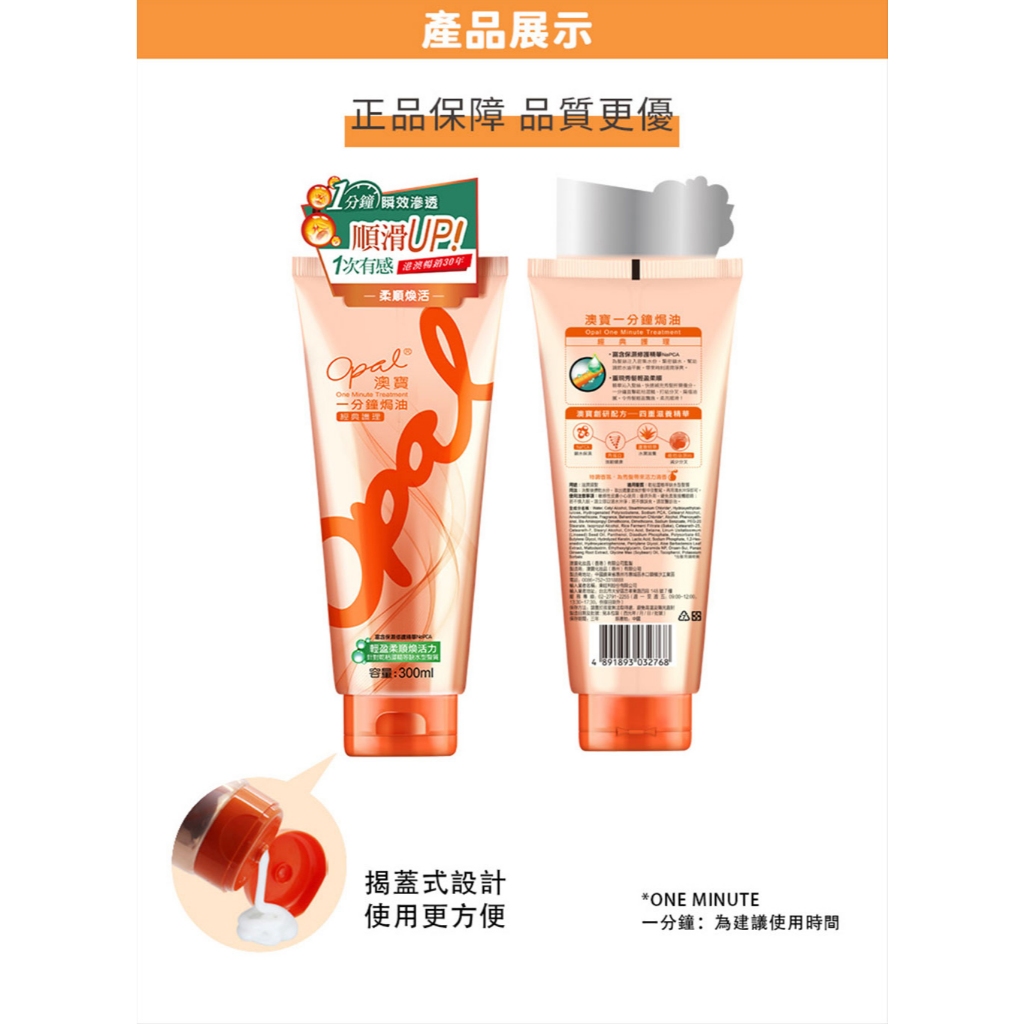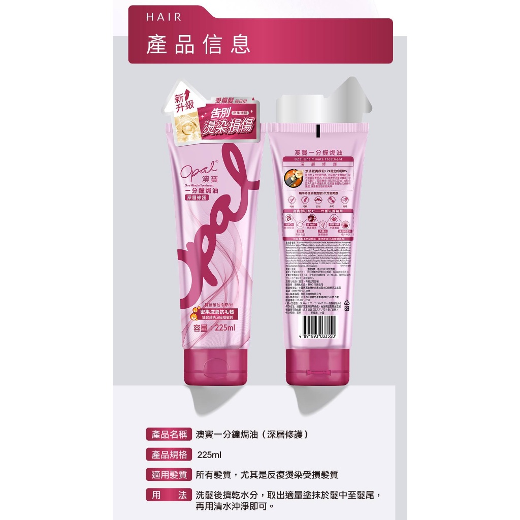 【Opal 澳寶 】一分鐘焗油頭髮護理 柔順 修護 護髮 焗油 護髮乳(300ml/225ml)