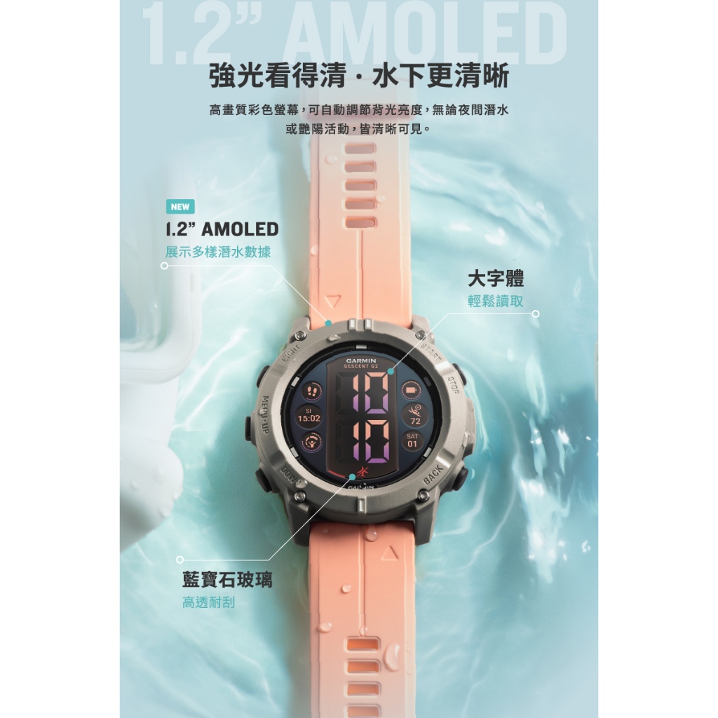 GARMIN Descent G2 Amoled 進階GPS潛水電腦錶石墨黑|礁岩棕/珊瑚粉Smartwatches & Fitness TrackersGARMIN 官方旗艦館