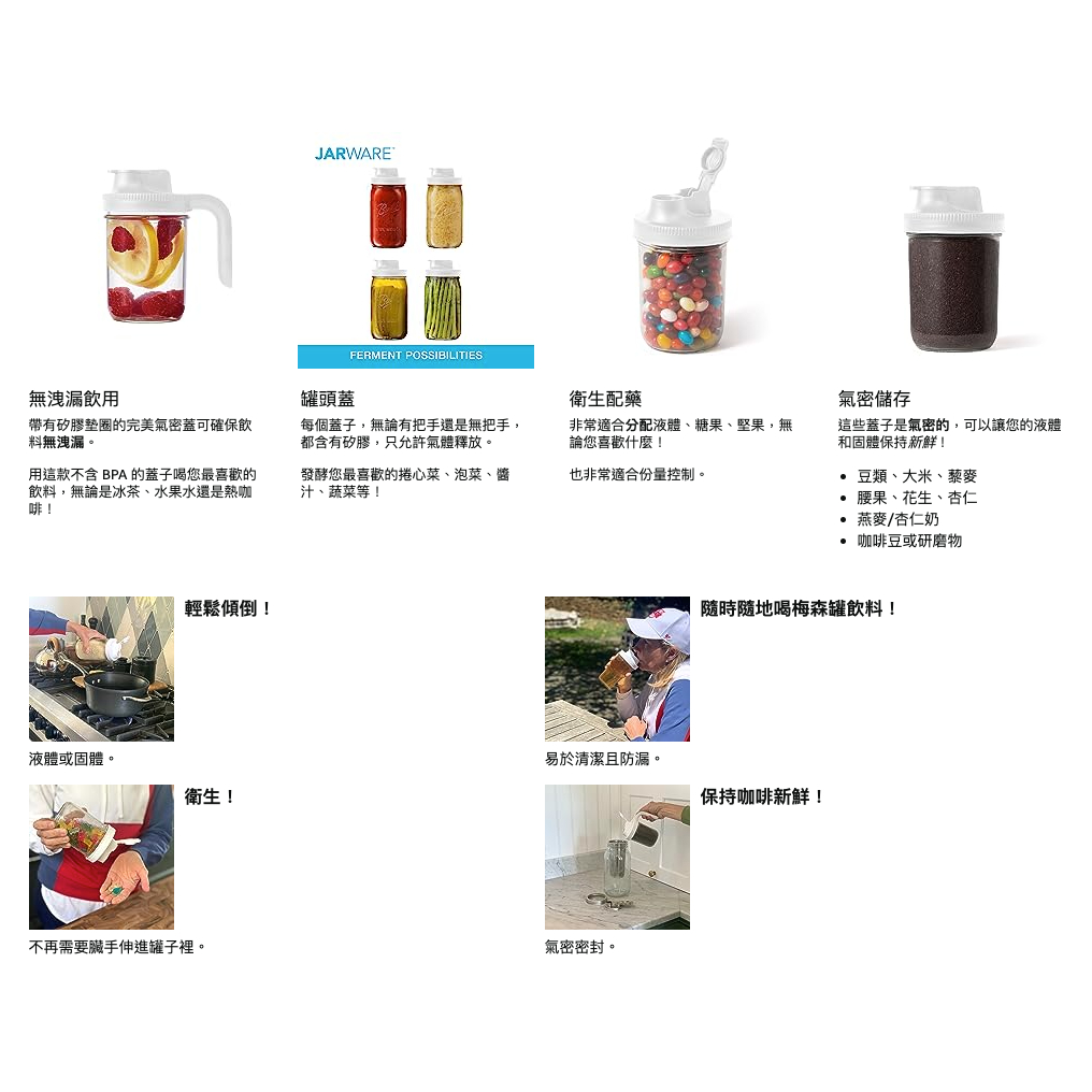 reCAP® Mason Jars Lid POUR cap『寬口』飲料杯蓋 新款升級版 飲料隨行杯 提把蓋 梅森罐配件黑色|藍黑|銀色|新款-純白Cups, Mugs & GlassesGAPL 激安殿堂旗艦店