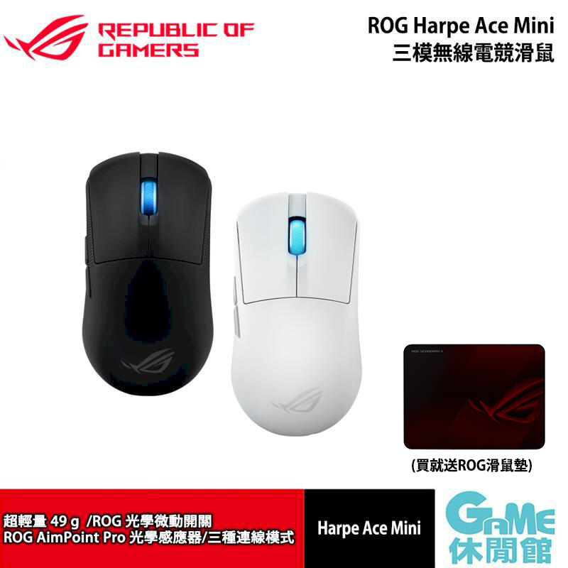 ROG Harpe Ace Mini 三模無線電競滑鼠 黑/白 送鼠墊【現貨】【GAME休閒館】黑色|白色MiceGAME休閒館