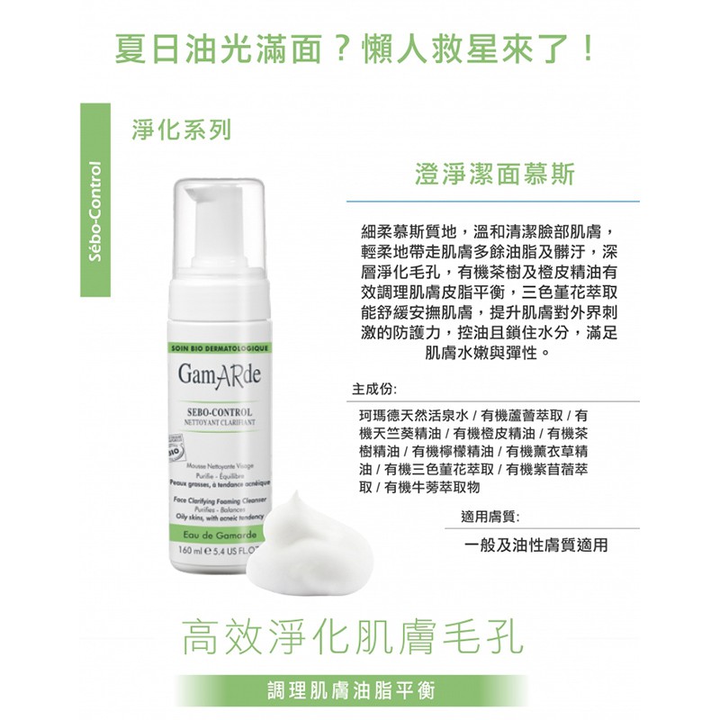 GAMARDE 珂瑪德 澄淨潔面慕斯 溫和清潔 調理皮脂 敏感肌 混和肌 痘痘肌 油肌GAMARDE 珂瑪德 澄淨潔面慕斯 溫和清潔 調理皮脂 敏感肌 混和肌 痘痘肌 油肌Facial CleanserGAMARDE 法國珂瑪德 天然有機醫美保養品