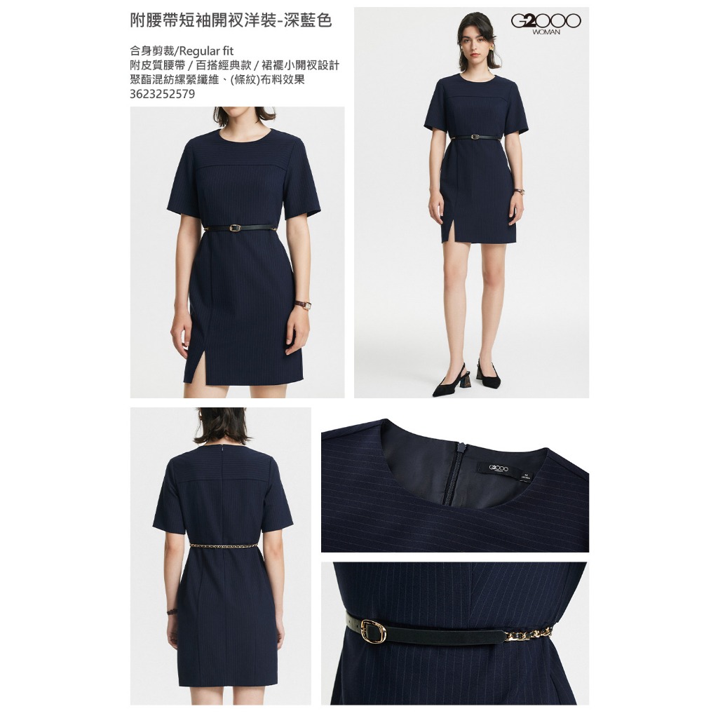 【G2000】短袖開衩洋裝-深藍色34|36|38|40G2000品牌旗艦館