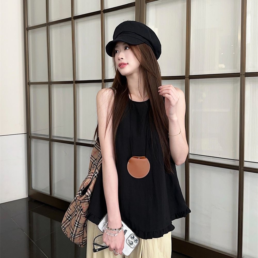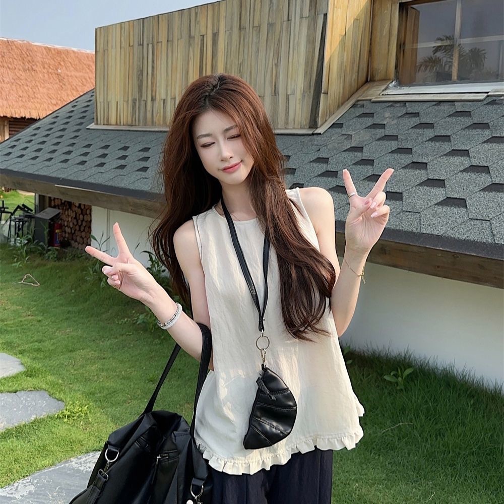 純棉無袖T恤 背心 寬鬆 素色背心 夏季薄款 百搭 顯瘦上衣 外穿 圓領無袖t恤