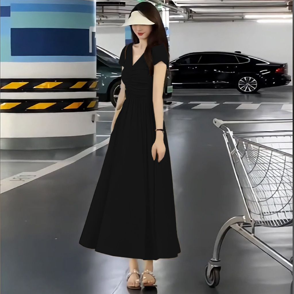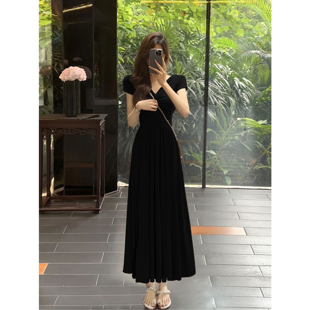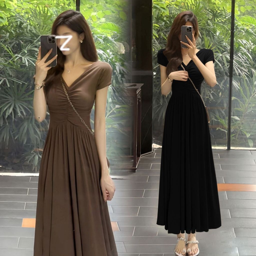 FUXI 法式氣質V領連身裙女 短袖洋裝 褶皺收腰顯瘦開叉長裙 連身長裙 純欲風素色連衣裙 女裝 裙子1503黑色,S|1503黑色,M|1503黑色,L|1503黑色,XL|1503黑色,2XL|1503咖啡,S|1503咖啡,M|1503咖啡,L|1503咖啡,XL|1503咖啡,2XLFUXI 服喜行