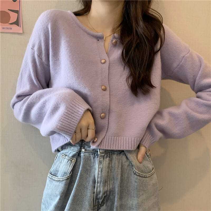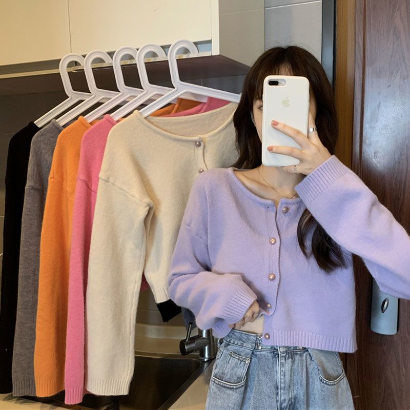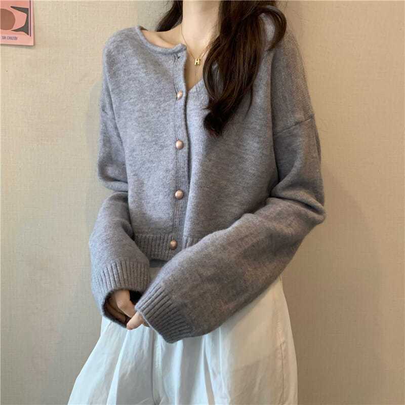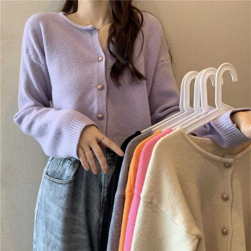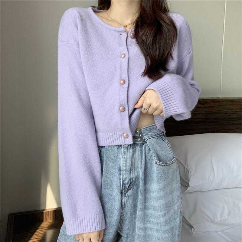 FUXI 針織外套女 短版外套 針織開衫 小外套 薄款毛衣外套 軟糯單排扣圓領針織上衣 寬鬆長袖外套 女裝 衣服紫色,均碼 40-62公斤|黑色,均碼 40-62公斤|灰色,均碼 40-62公斤|杏色,均碼 40-62公斤|玫紅,均碼 40-62公斤|橘色,均碼 40-62公斤FUXI 服喜行