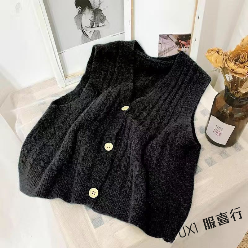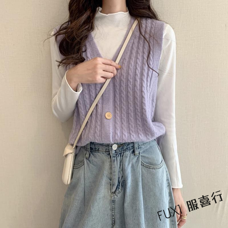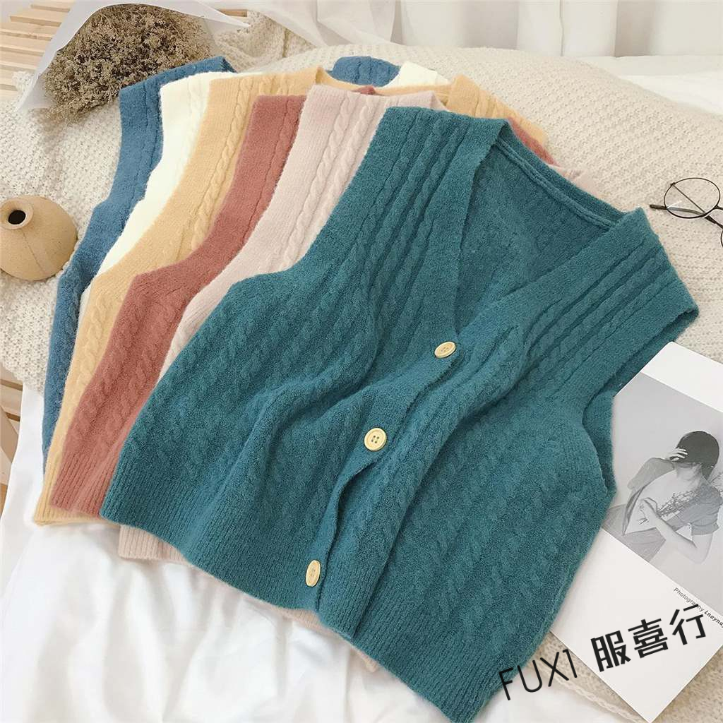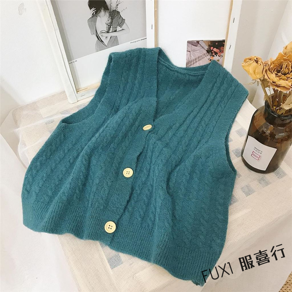FUXI 韓版針織背心 毛線背心 針織馬甲女 無袖上衣 薄款毛衣背心 女生素色V領單排扣針織開衫馬甲 復古外搭衣服孔雀綠色,均碼 40-70公斤|香芋紫,均碼 40-70公斤|杏色,均碼 40-70公斤|磚紅色,均碼 40-70公斤|白色,均碼 40-70公斤|牛仔藍色,均碼 40-70公斤|黃色,均碼 40-70公斤|黑色,均碼 40-70公斤VestsFUXI 服喜行