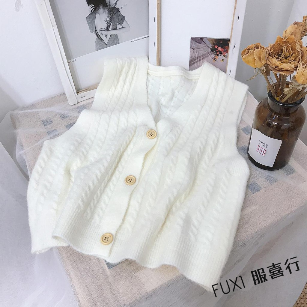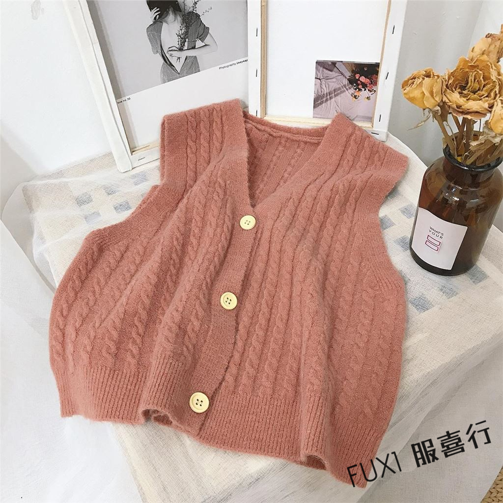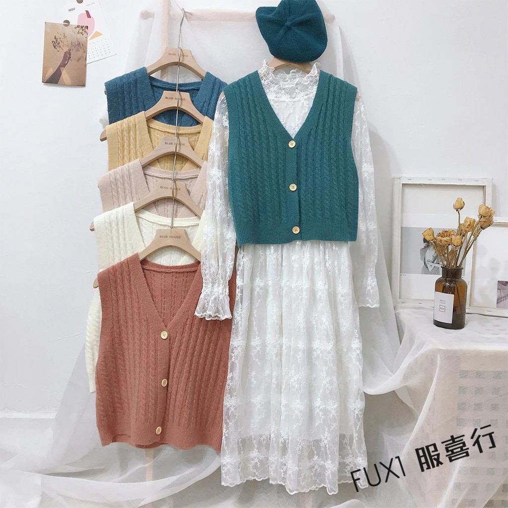 FUXI 韓版針織背心 毛線背心 針織馬甲女 無袖上衣 薄款毛衣背心 女生素色V領單排扣針織開衫馬甲 復古外搭衣服孔雀綠色,均碼 40-70公斤|香芋紫,均碼 40-70公斤|杏色,均碼 40-70公斤|磚紅色,均碼 40-70公斤|白色,均碼 40-70公斤|牛仔藍色,均碼 40-70公斤|黃色,均碼 40-70公斤|黑色,均碼 40-70公斤VestsFUXI 服喜行