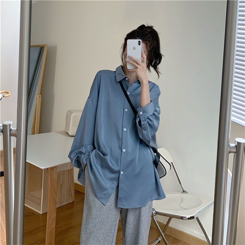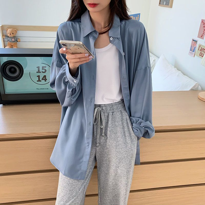 FUXI 韓版寬鬆襯衫外套女 垂感冰絲燈籠袖襯衫 防曬外套 長袖上衣 中長款慵懶風百搭薄款外套 女裝 衣服白色,L 58-68公斤|白色,XL 68-75公斤|藍色,S 52公斤內|藍色,M 51-58公斤|藍色,L 58-68公斤|藍色,XL 68-75公斤|黑色,S 52公斤內|黑色,M 51-58公斤|黑色,L 58-68公斤|黑色,XL 68-75公斤|白色,S 52公斤內|白色,M 51-58公斤Shirts & BlousesFUXI 服喜行