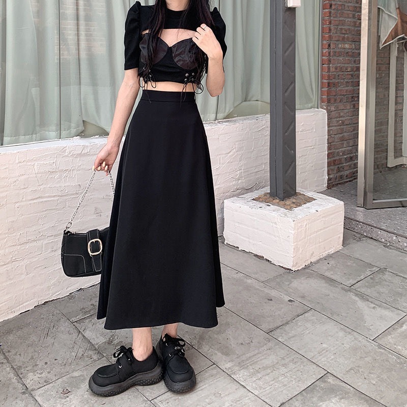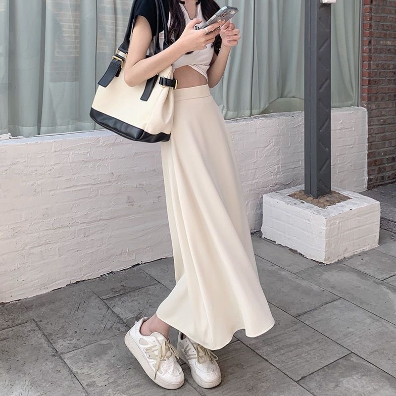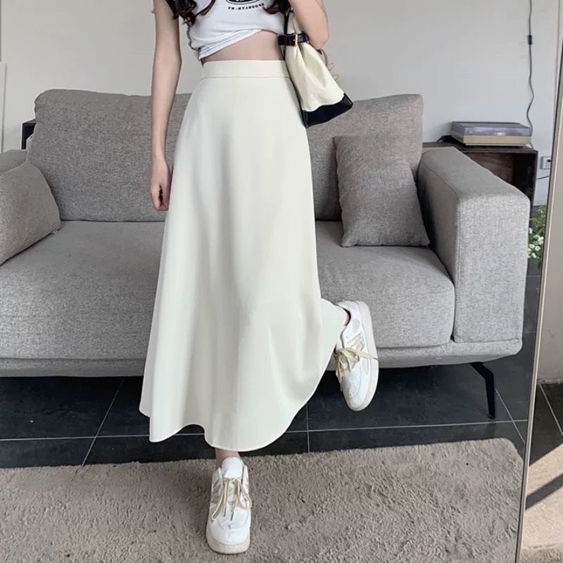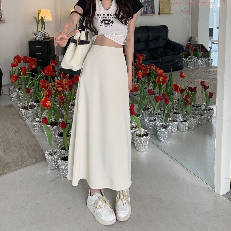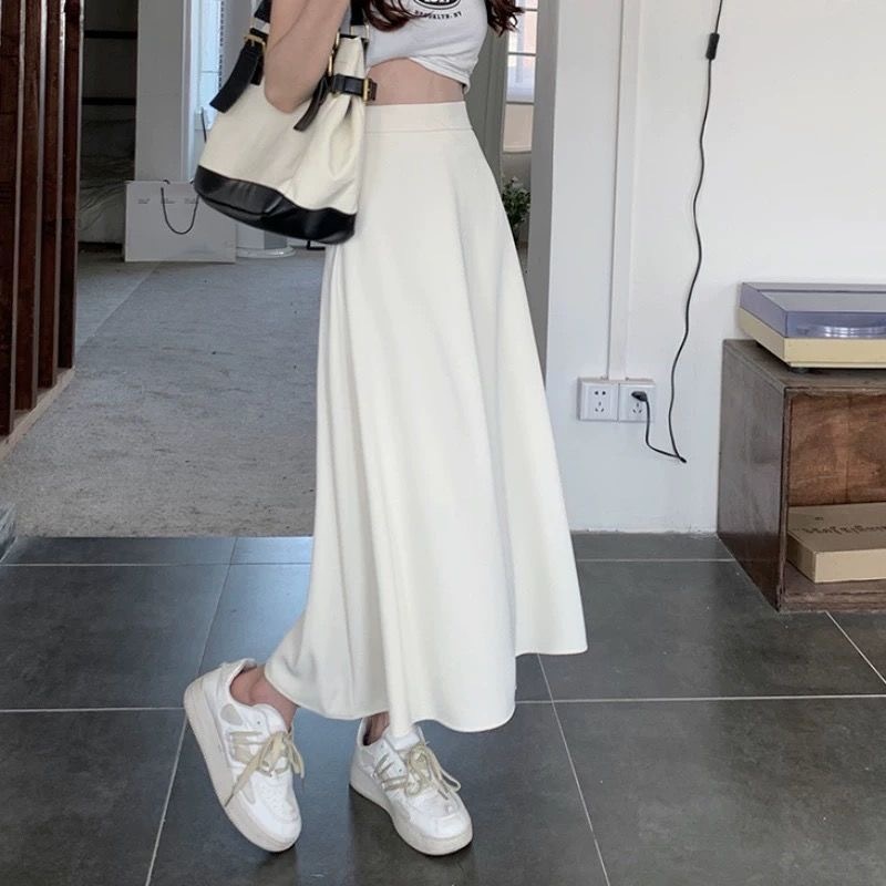 FUXI 長裙女 半身裙 韓版氣質顯瘦高腰a字裙 大擺垂感中長裙 女生裙子 裙裝