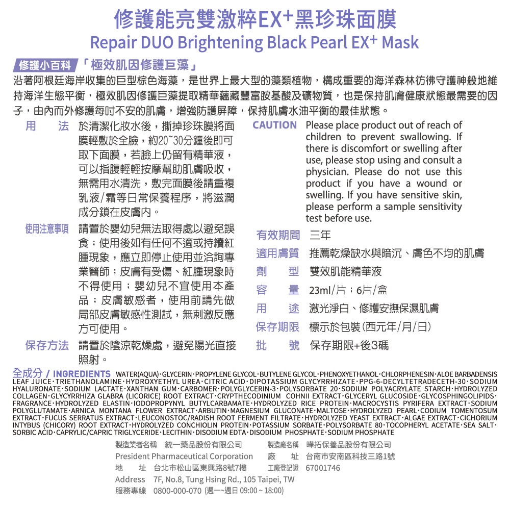 【我的美麗日記】修護能亮雙激粹EX+黑珍珠面膜(6片/盒)修護能亮雙激粹Face Mask & PacksMIPA 生活百貨