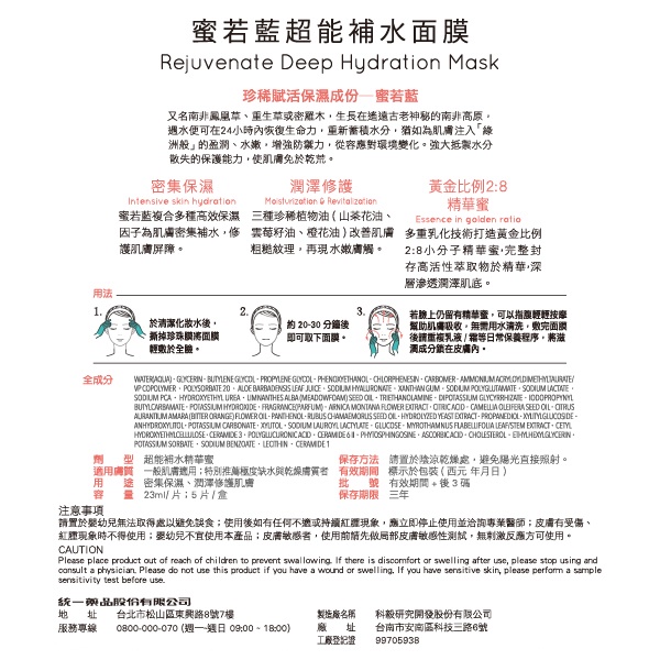 【我的美麗日記】蜜若藍超能補水面膜(5片/盒)蜜若藍超能補水Face Mask & PacksMIPA 生活百貨