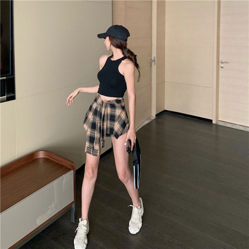 FUXI 辣妹套裝女 韓版修身顯瘦背心 小可愛 無袖上衣 不規則格子短裙 褲裙 兩件套 女裝 衣服背心+短褲,S 35-45公斤|背心+短褲,M 45-52公斤|背心+短褲,L 52-60公斤|背心+短褲,XL 60-68公斤|背心+短褲,2XL 68-75公斤|背心+短褲,3XL 75-82公斤|黑色背心單件,S 35-45公斤|黑色背心單件,M 45-52公斤|黑色背心單件,L 52-60公斤|黑色背心單件,XL 60-68公斤|黑色背心單件,2XL 68-75公斤|黑色背心單件,3XL 75-82公斤|格子短褲單件,S 35-45公斤|格子短褲單件,M 45-52公斤|格子短褲單件,L 52-60公斤|格子短褲單件,XL 60-68公斤|格子短褲單件,2XL 68-75公斤|格子短褲單件,3XL 75-82公斤Individual SetsFUXI 服喜行