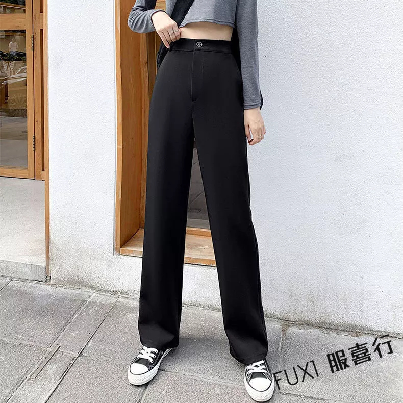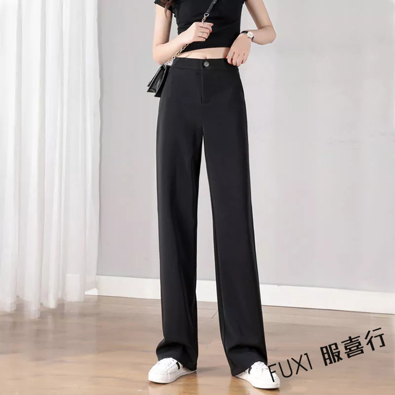 • FUXI 西裝褲 闊腿褲 高腰垂感寬鬆顯瘦長褲 直筒褲 休閒褲 黑色褲子 拖地褲子