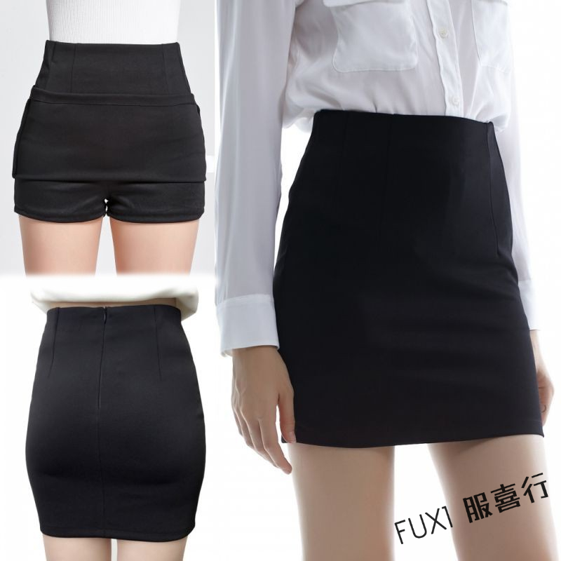 • FUXI 高腰西裝裙 職業裙 包臀裙 帶安全褲短裙 防走光短裙 裙褲 中長款半身裙 OL高彈力一步窄裙女
