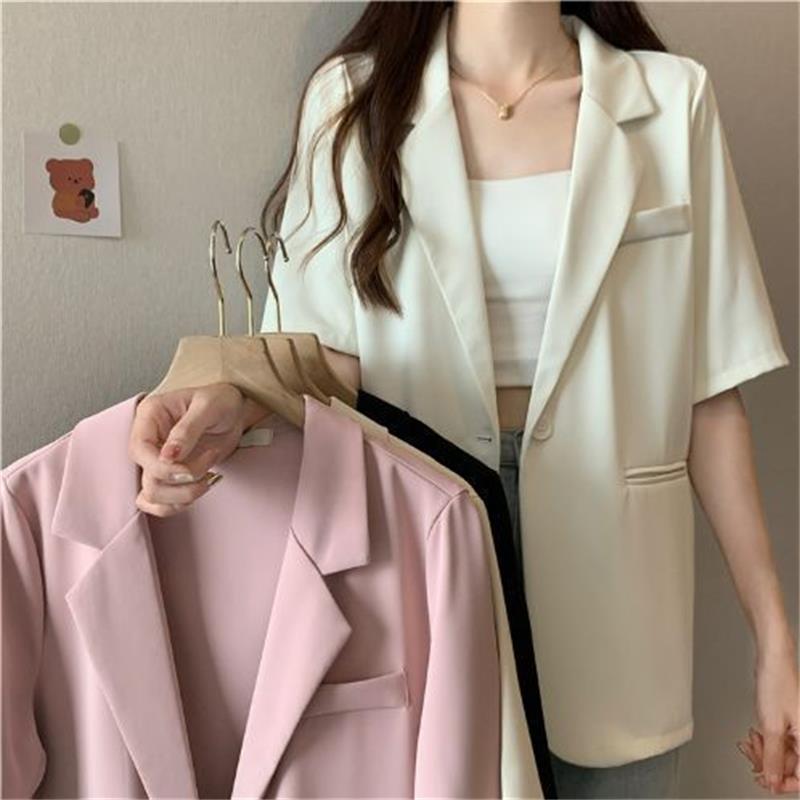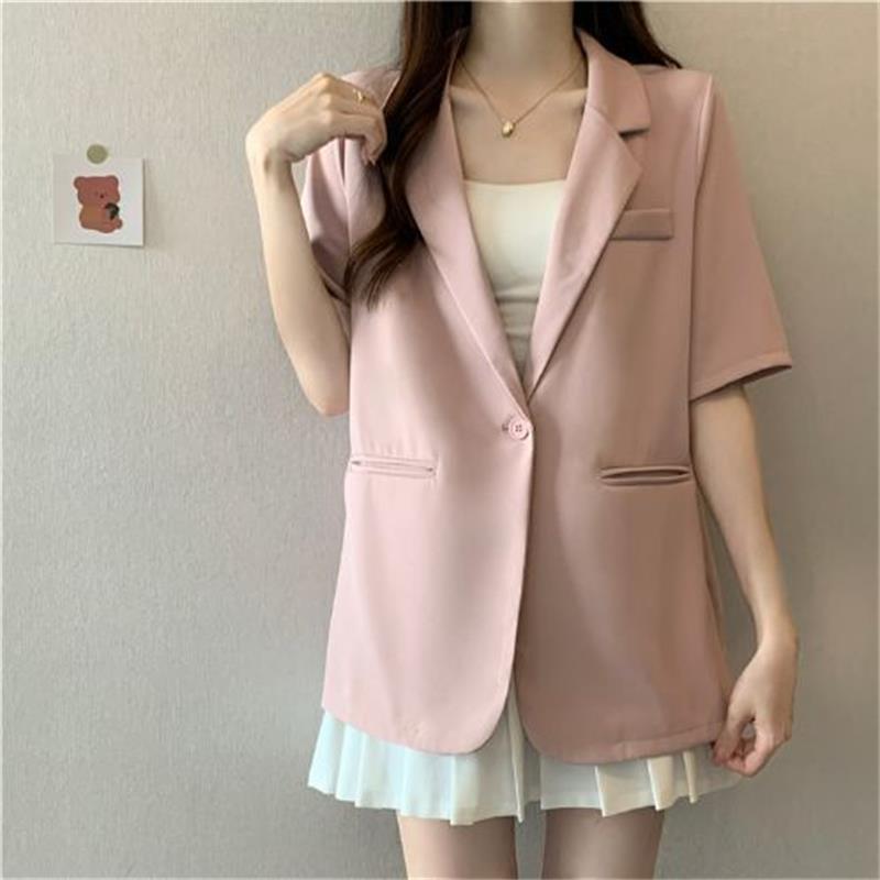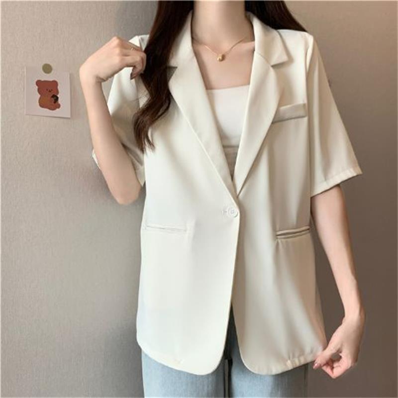 • FUXI 薄款短袖西裝外套女 韓版寬鬆西服外套 小個子休閒短袖外套 短袖上衣 女裝 衣服