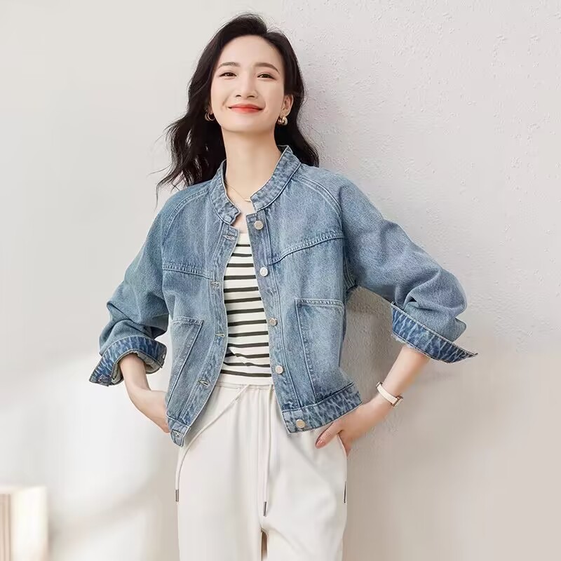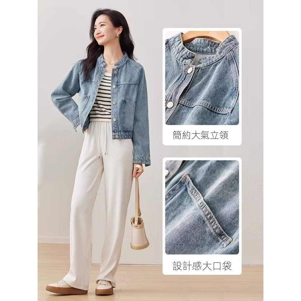 FUXI 復古水洗牛仔外套女 短版外套 立領小個子長袖外套 寬鬆上衣 夾克 女生外套 女裝 衣服藍色,S 48公斤內|藍色,M 48-55公斤|藍色,L 55-62公斤|藍色,XL 62-70公斤JacketsFUXI 服喜行