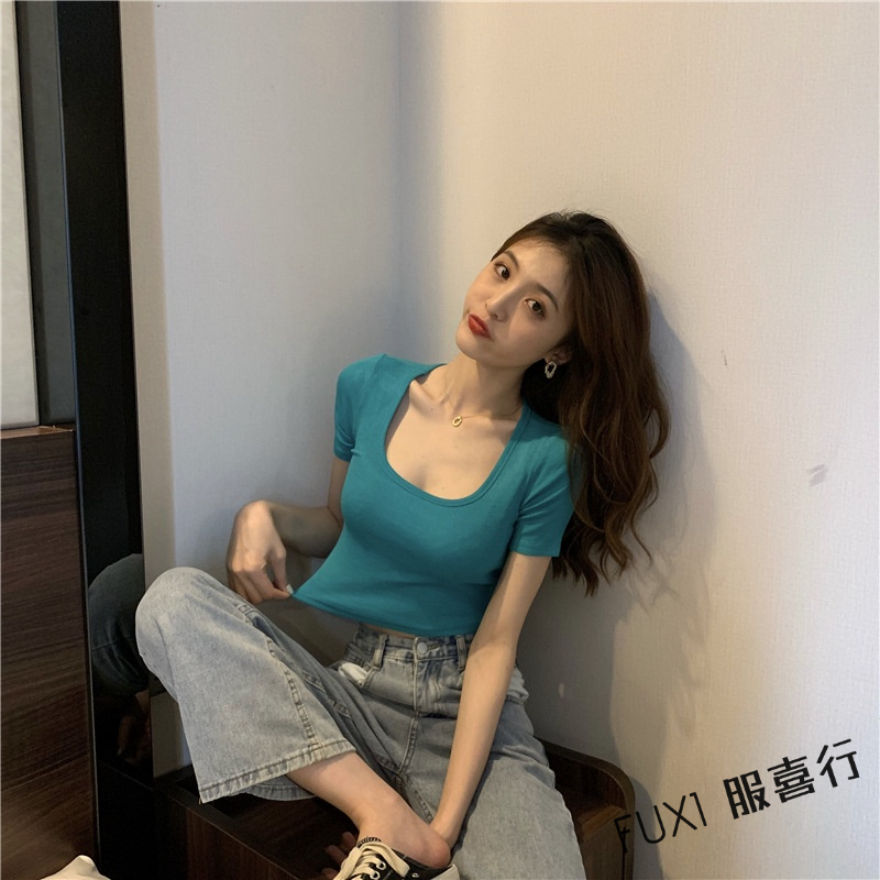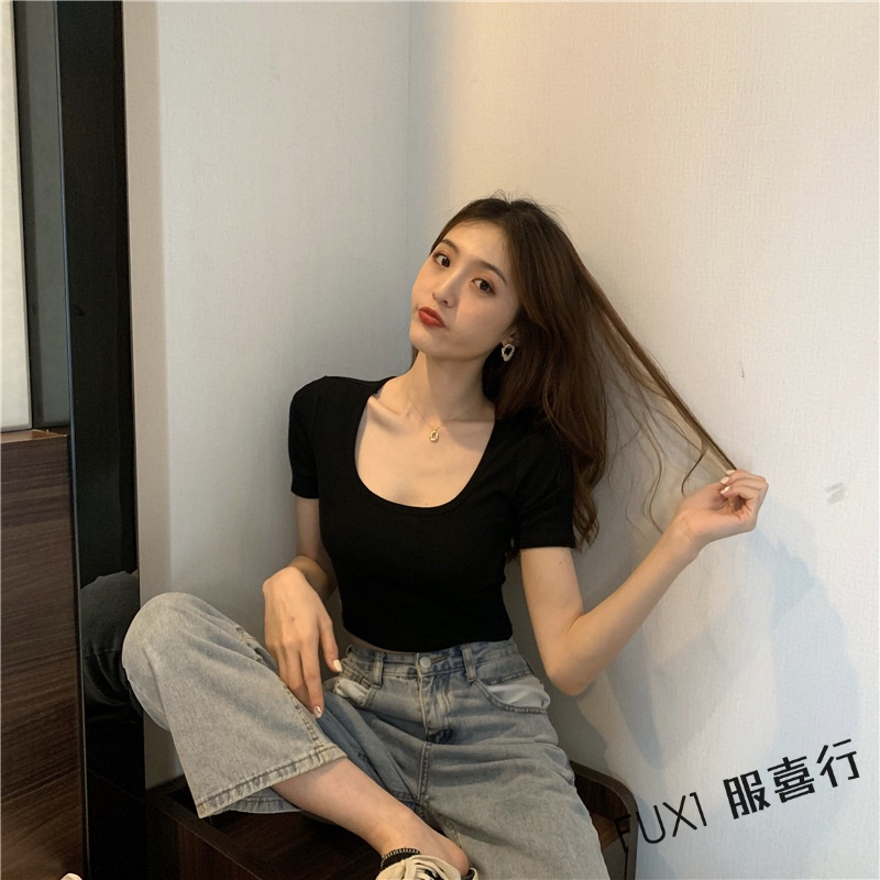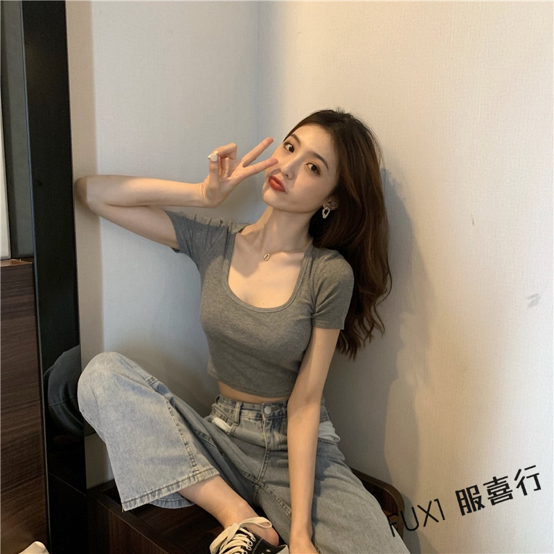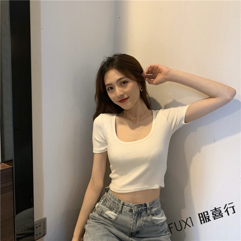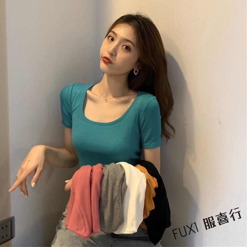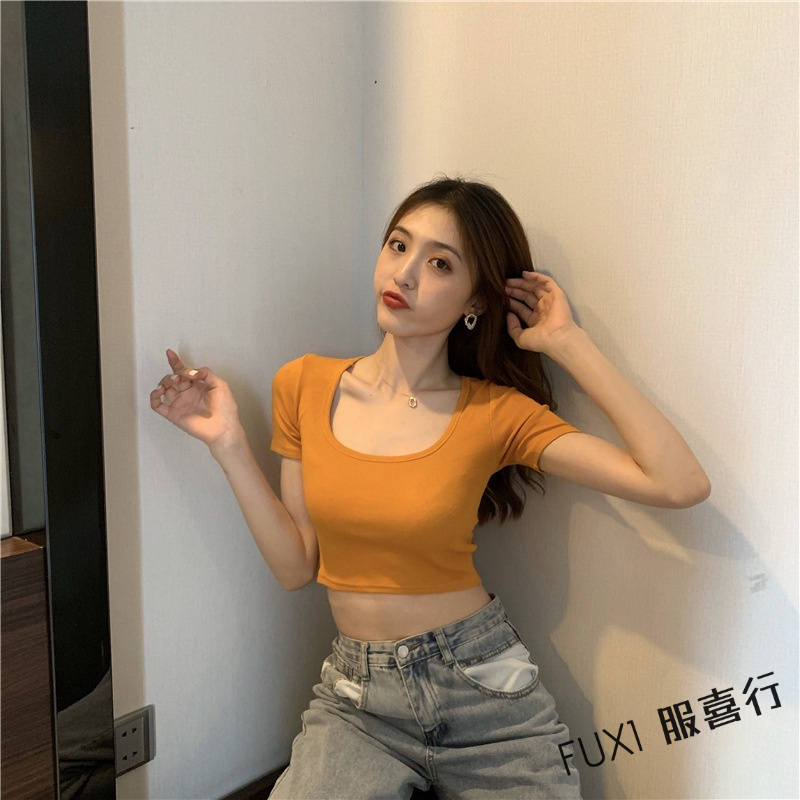 FUXI 短袖T恤 短袖上衣 短版上衣 素色T恤 露臍上衣 修身彈力t恤 顯瘦打底衫 女生上衣 顯瘦上衣 內搭上衣【A#827白色,均碼 40-65公斤|#827橘色,均碼 40-65公斤|#827玫紅,均碼 40-65公斤|#827黑色,均碼 40-65公斤|#827綠色,均碼 40-65公斤|#827灰色,均碼 40-65公斤T-shirtsFUXI 服喜行