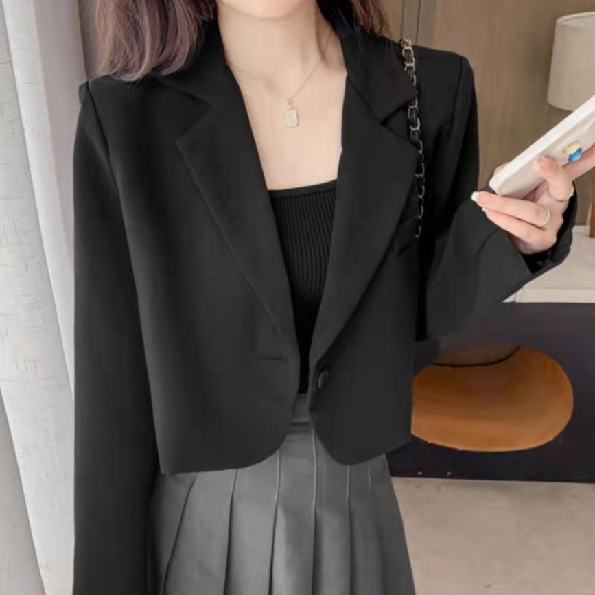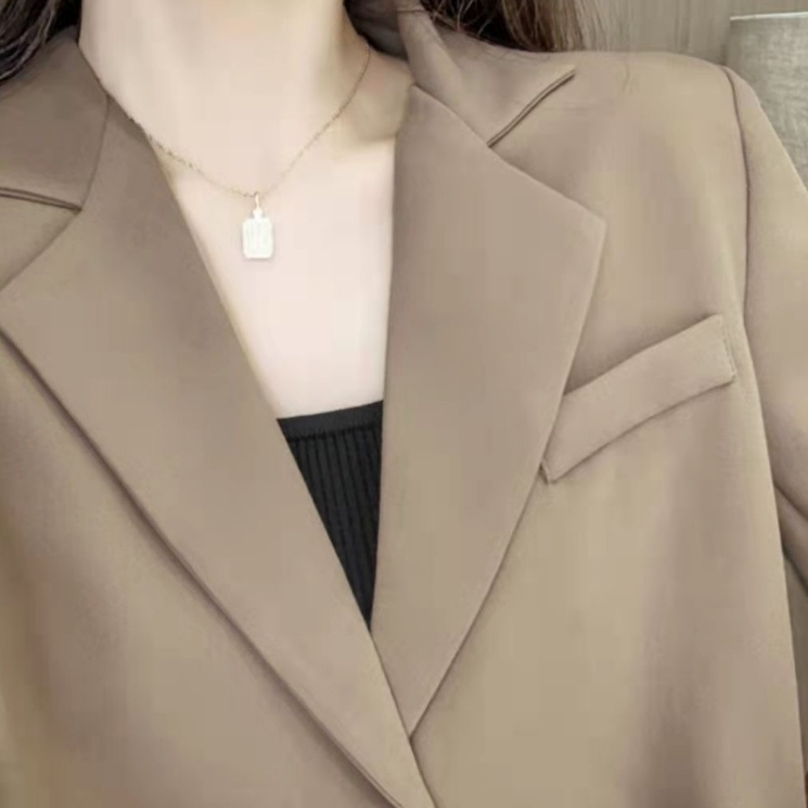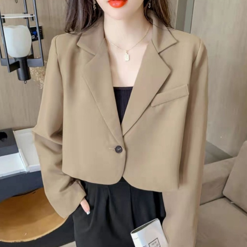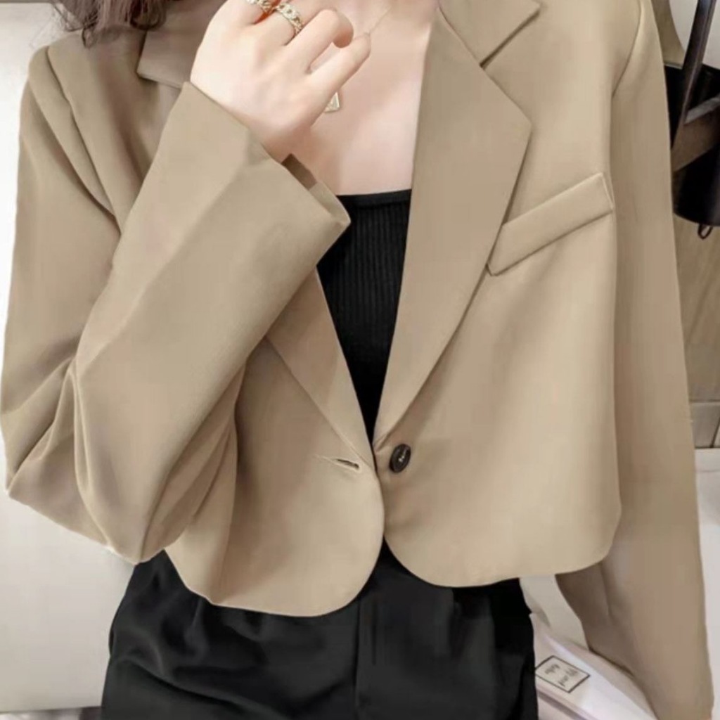 FUXI 西裝外套女 短版西裝外套 寬鬆西服 西裝領小外套 薄款外套 女裝 衣服黑色,S|黑色,M|黑色,L|黑色,XL|卡其色,S|卡其色,M|卡其色,L|卡其色,XLBlazersFUXI 服喜行