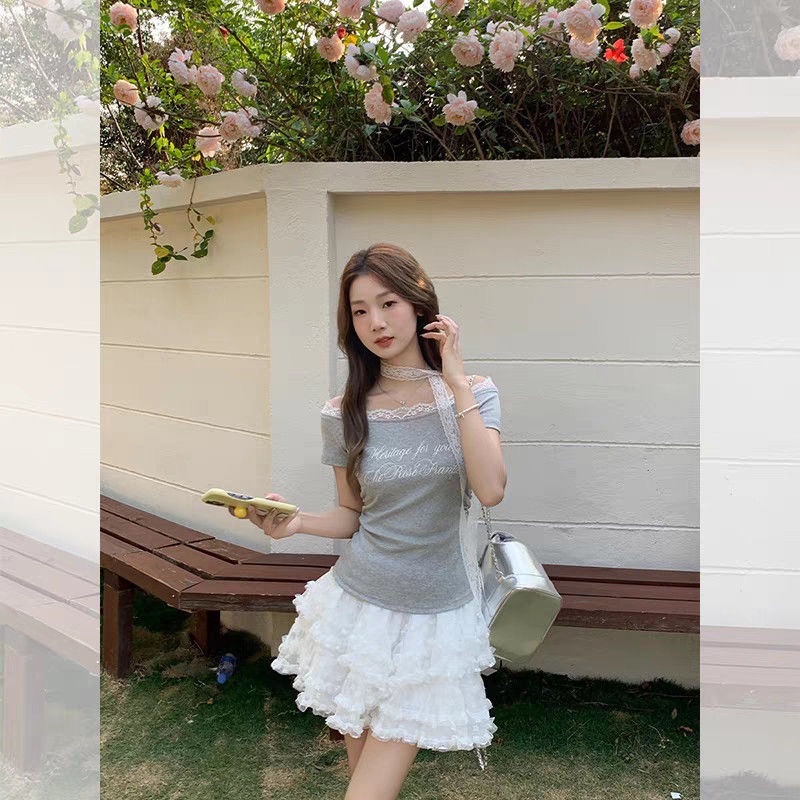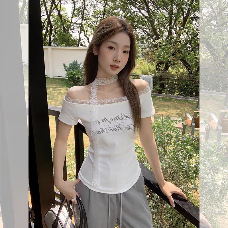 FUXI 一字肩上衣女 純欲辣妹上衣 蕾絲拼接飄帶字母印花露肩上衣 短袖t恤 一字領上衣 女裝 衣服白色-送蕾絲圍脖,S 40-48公斤|白色-送蕾絲圍脖,M 48-52公斤|白色-送蕾絲圍脖,L 52-58公斤|白色-送蕾絲圍脖,XL 58-65公斤|灰色-送蕾絲圍脖,S 40-48公斤|灰色-送蕾絲圍脖,M 48-52公斤|灰色-送蕾絲圍脖,L 52-58公斤|灰色-送蕾絲圍脖,XL 58-65公斤T-shirtsFUXI 服喜行