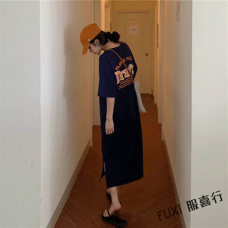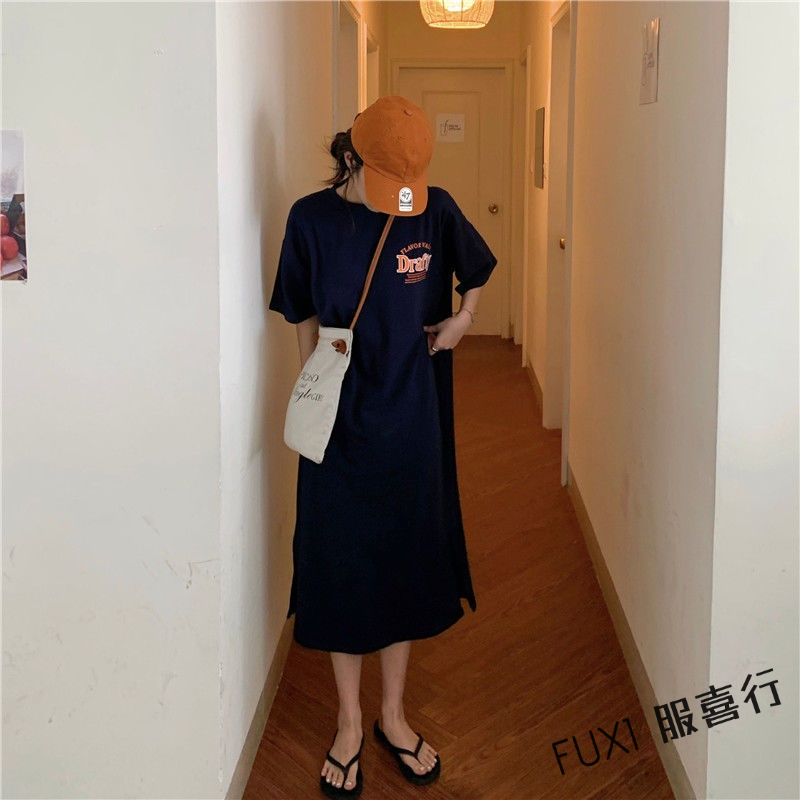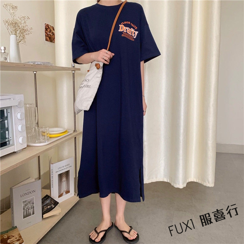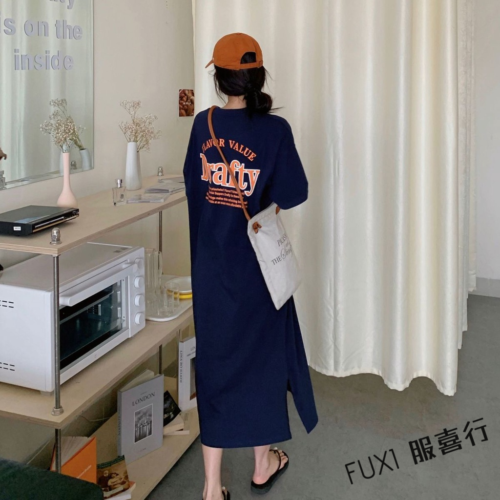 短袖洋裝 T恤裙 連身裙女 純棉長版洋裝 韓版過膝寬鬆t恤裙 長裙847灰色,XL|847灰色,2XL|847黑色,M|847白色,M|847白色,L|811藏青色,M|811藏青色,L|811藏青色,2XL|847灰色,M|847黑色,2XL|847白色,XL|847黑色,L|847黑色,XL|847白色,2XL|811藏青色,XL|847灰色,LFUXI 服喜行
