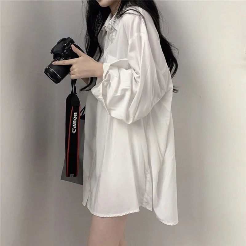 FUXI 白襯衫女 S-5XL長袖襯衫 職業襯衫 寬鬆工作服 大尺碼正裝 面試 畢業裝 白襯衣 藍色襯衫【T001】