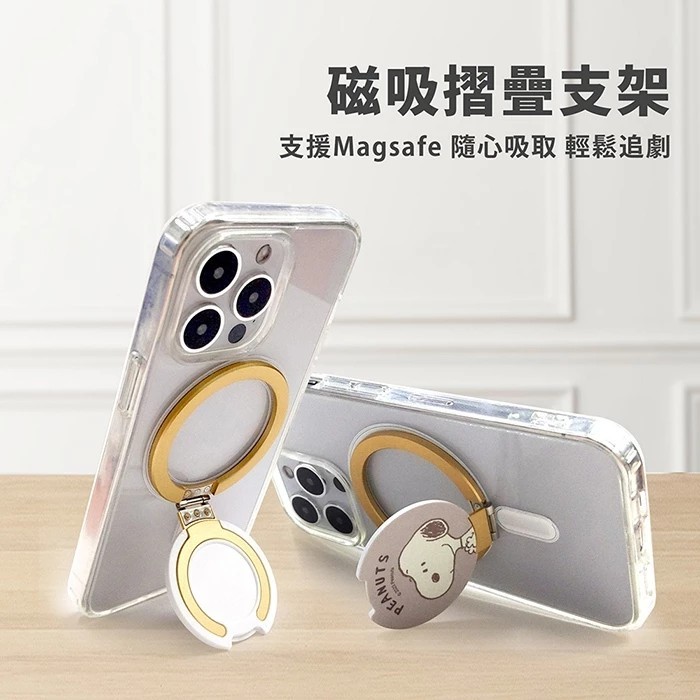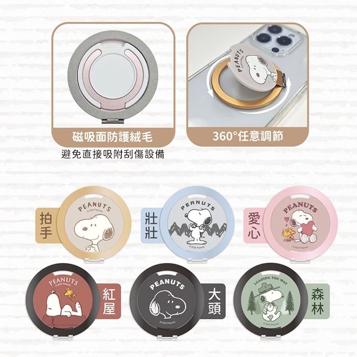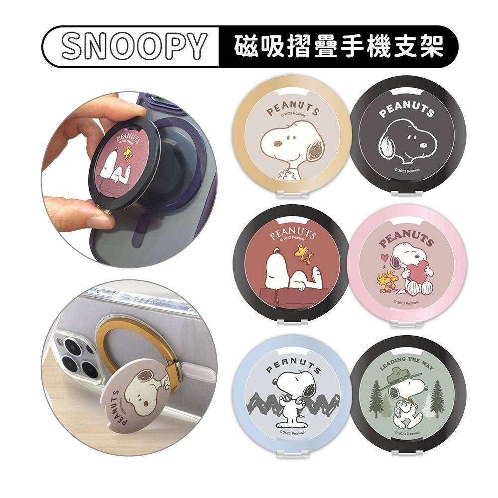 正版授權【SNOOPY 史努比】鋁合金 磁吸摺疊手機支架 (附磁吸圈貼片) 支架指環扣 手機架 磁吸支架 六款可選 現貨趴狗(紫+粉框)|壯壯(藍+藍框)|森林(綠+黑框)|紅屋(紅+黑框)|大頭(黑+黑框)|拍手(金+金框)Phone GripsFUNY台灣官方旗艦店
