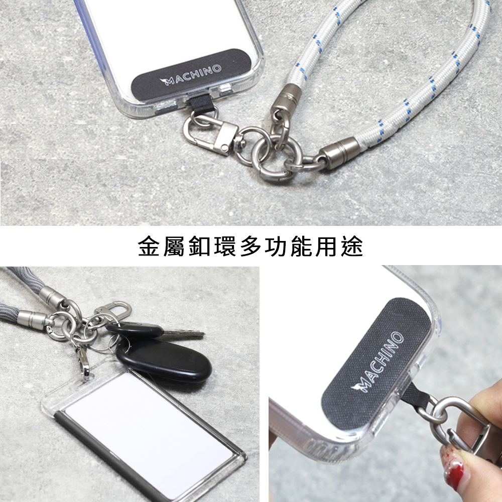 【MACHINO】金屬皮革風 手機掛練 手機繩 多功能手機掛鍊 包包掛練 附兩組掛片 120cm 長度可調 LG07
