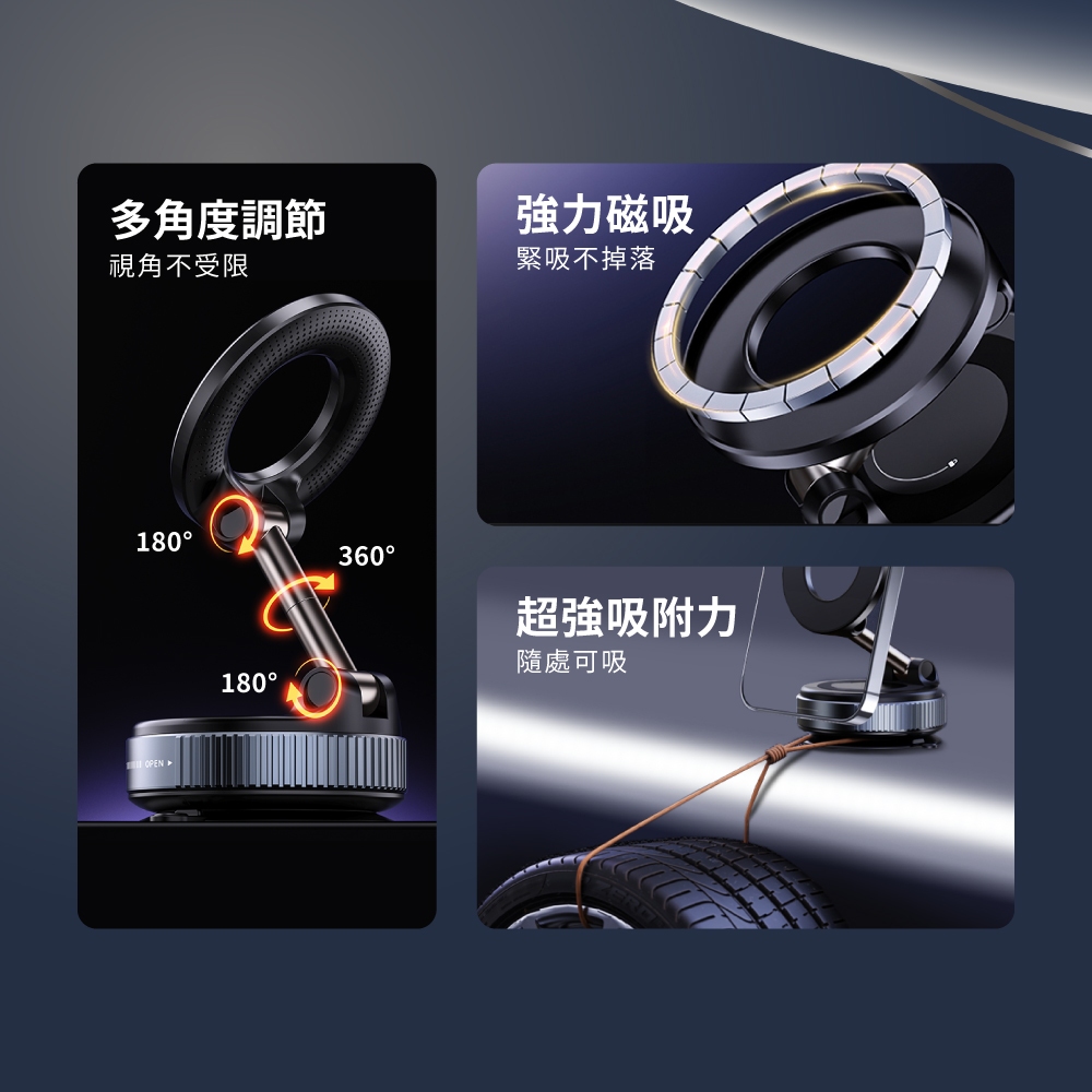 【aircolor】真空吸盤磁吸手機支架 機械式吸盤 牢固吸力 180°摺疊支架 360°旋轉支點 視角隨意調節