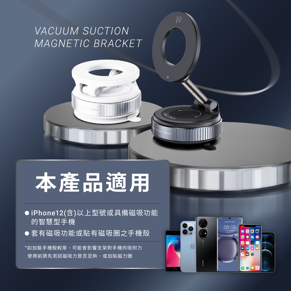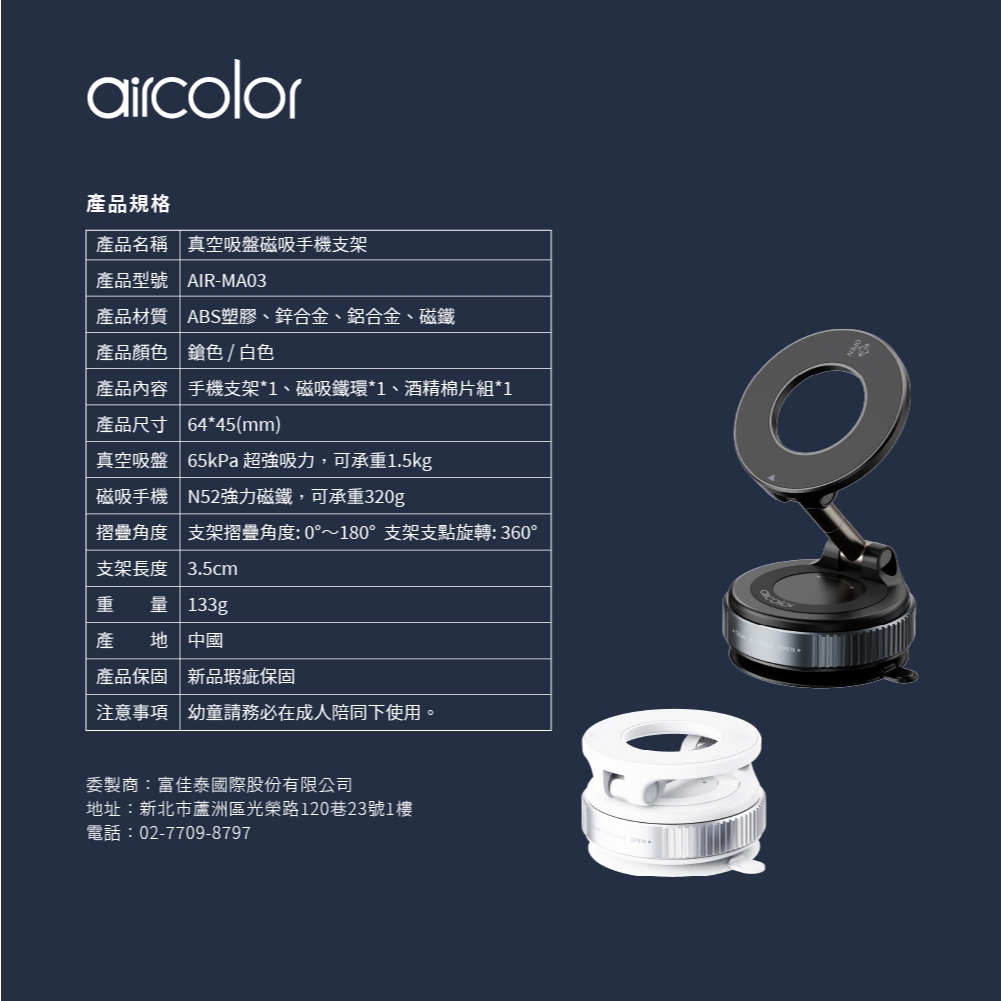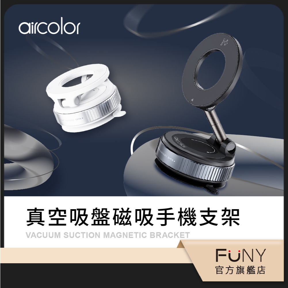 【aircolor】真空吸盤磁吸手機支架 機械式吸盤 牢固吸力 180°摺疊支架 360°旋轉支點 視角隨意調節鎗色|白色|鎗色白色兩入組Phone GripsFUNY台灣官方旗艦店