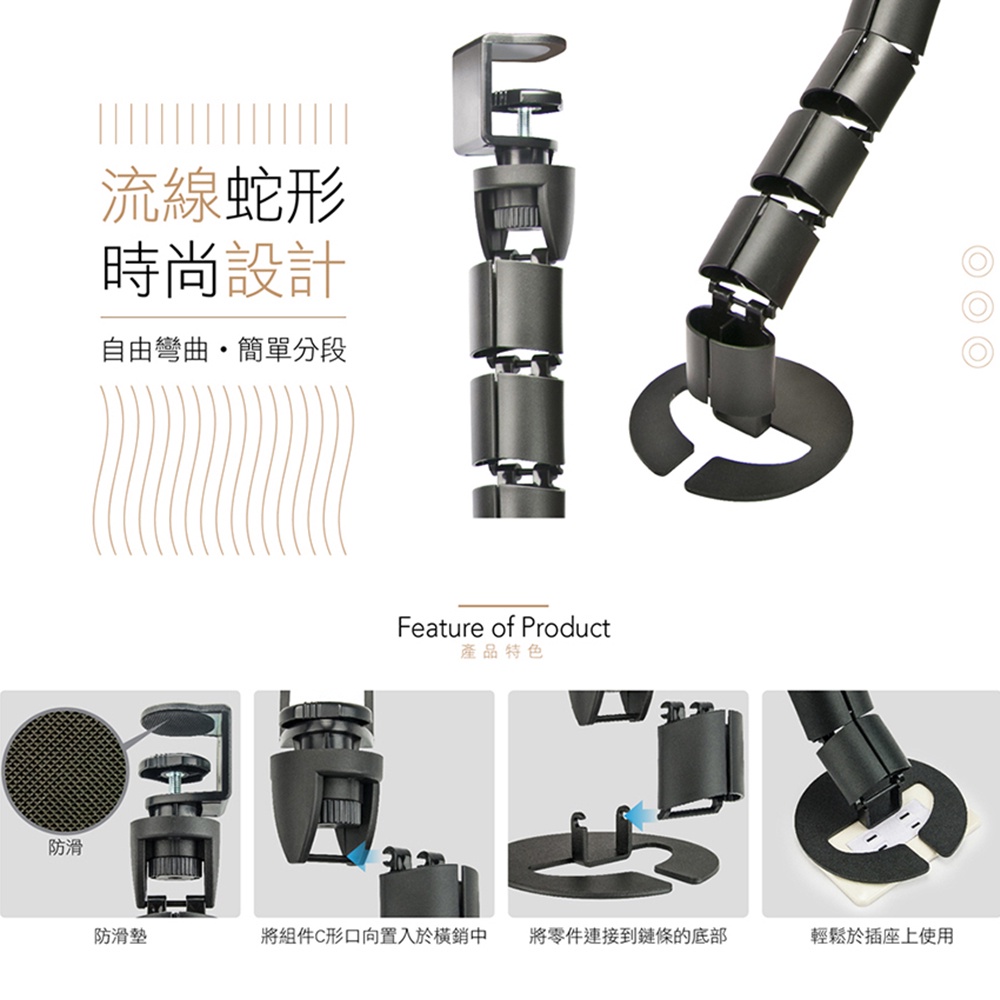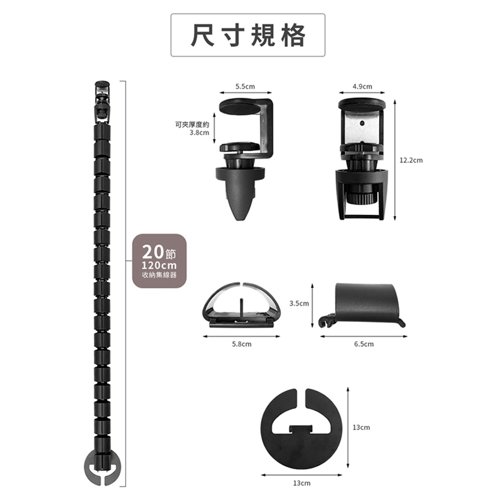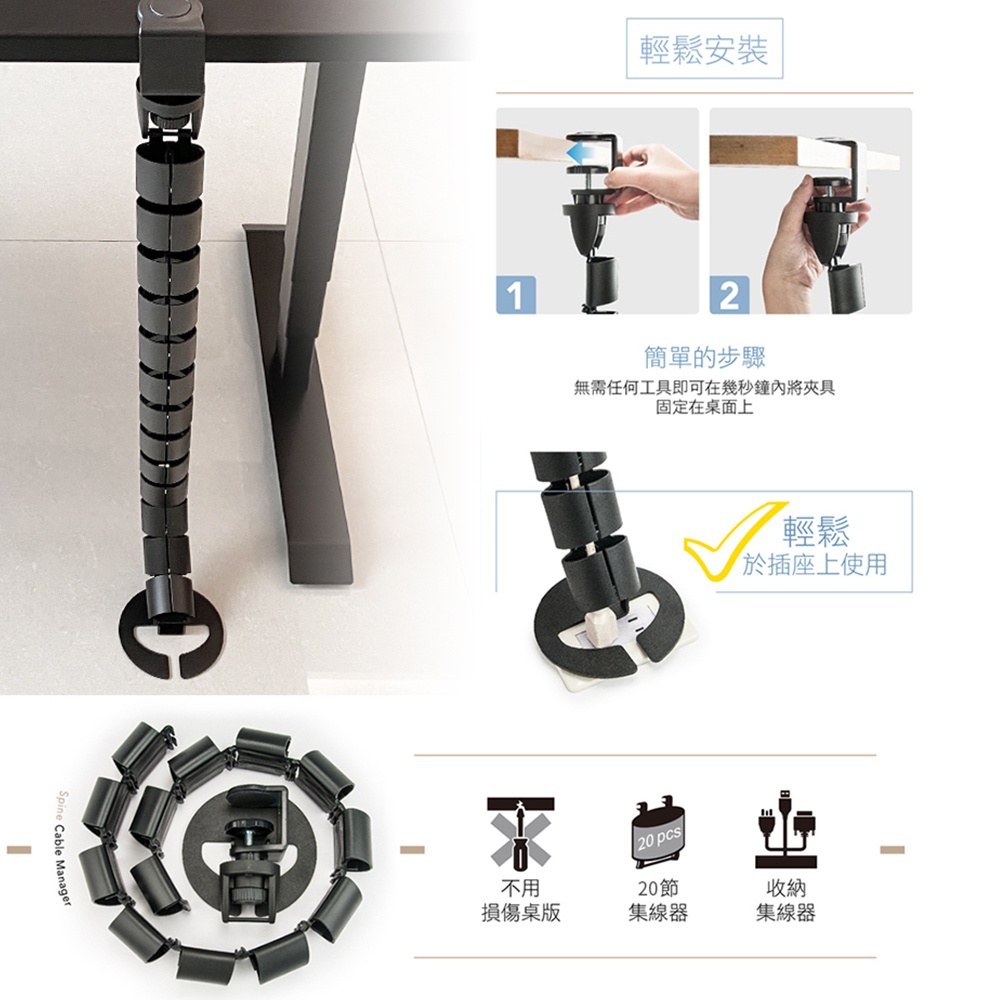 【FUNTE】夾式蛇形分節集線器 雙色可選|電動升降桌配件|品牌旗艦店黑色|白色Desk OrganizersFUNTE 升降桌|品牌旗艦店