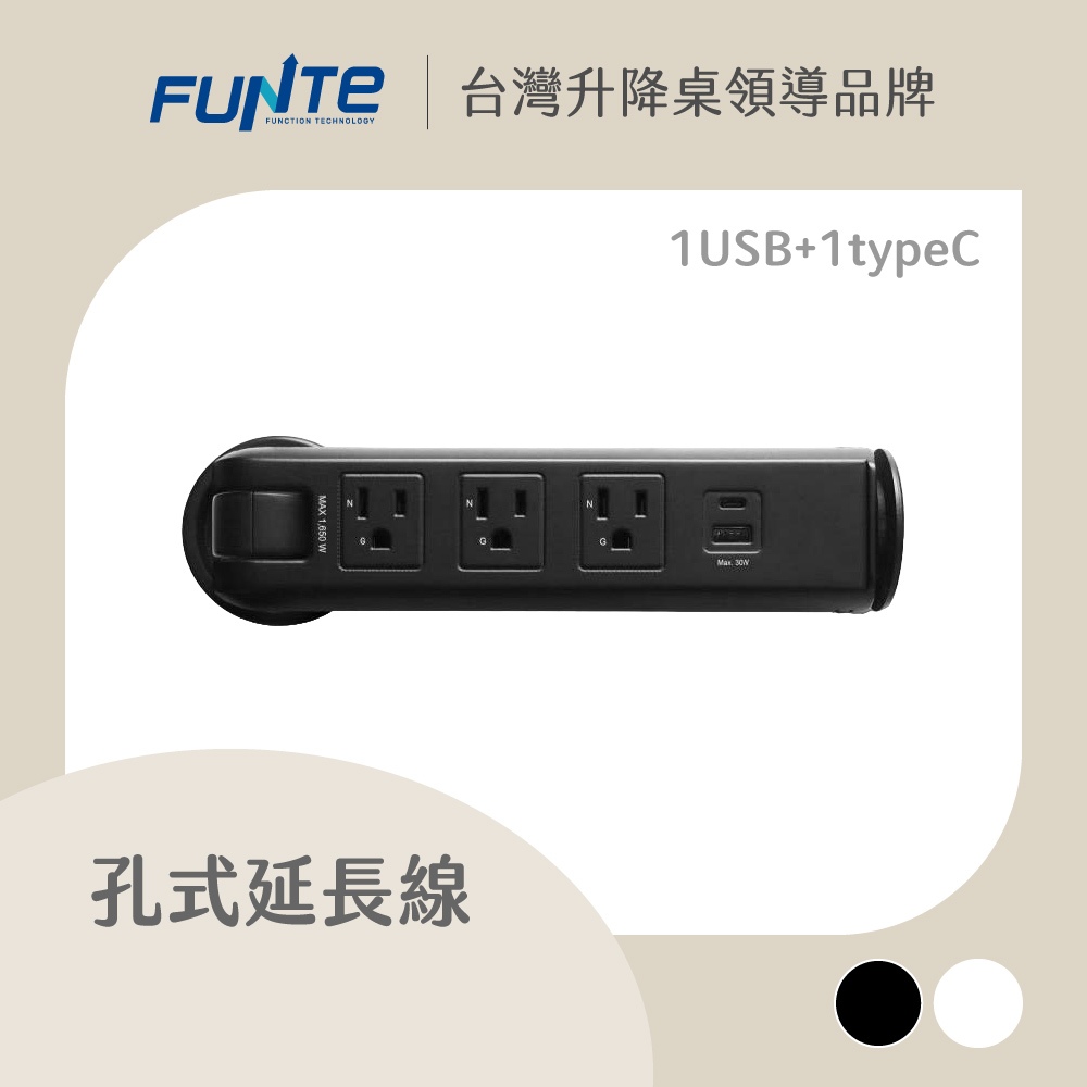 【FUNTE】孔式桌上型延長線 – 3插+USB+Type C|電動升降桌配件|品牌旗艦店黑色|白色Desks & TablesFUNTE 升降桌|品牌旗艦店