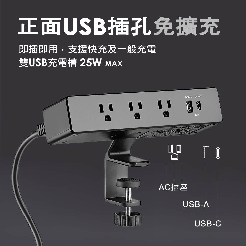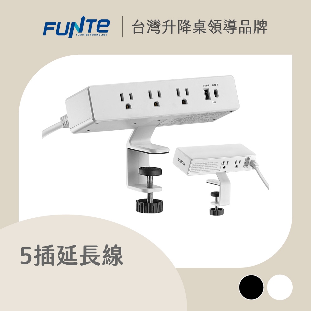 【FUNTE】桌上型延長線 – 5插+USB+TypeC 雙向快充|電動升降桌配件|品牌旗艦店黑色|白色Desks & TablesFUNTE 升降桌|品牌旗艦店
